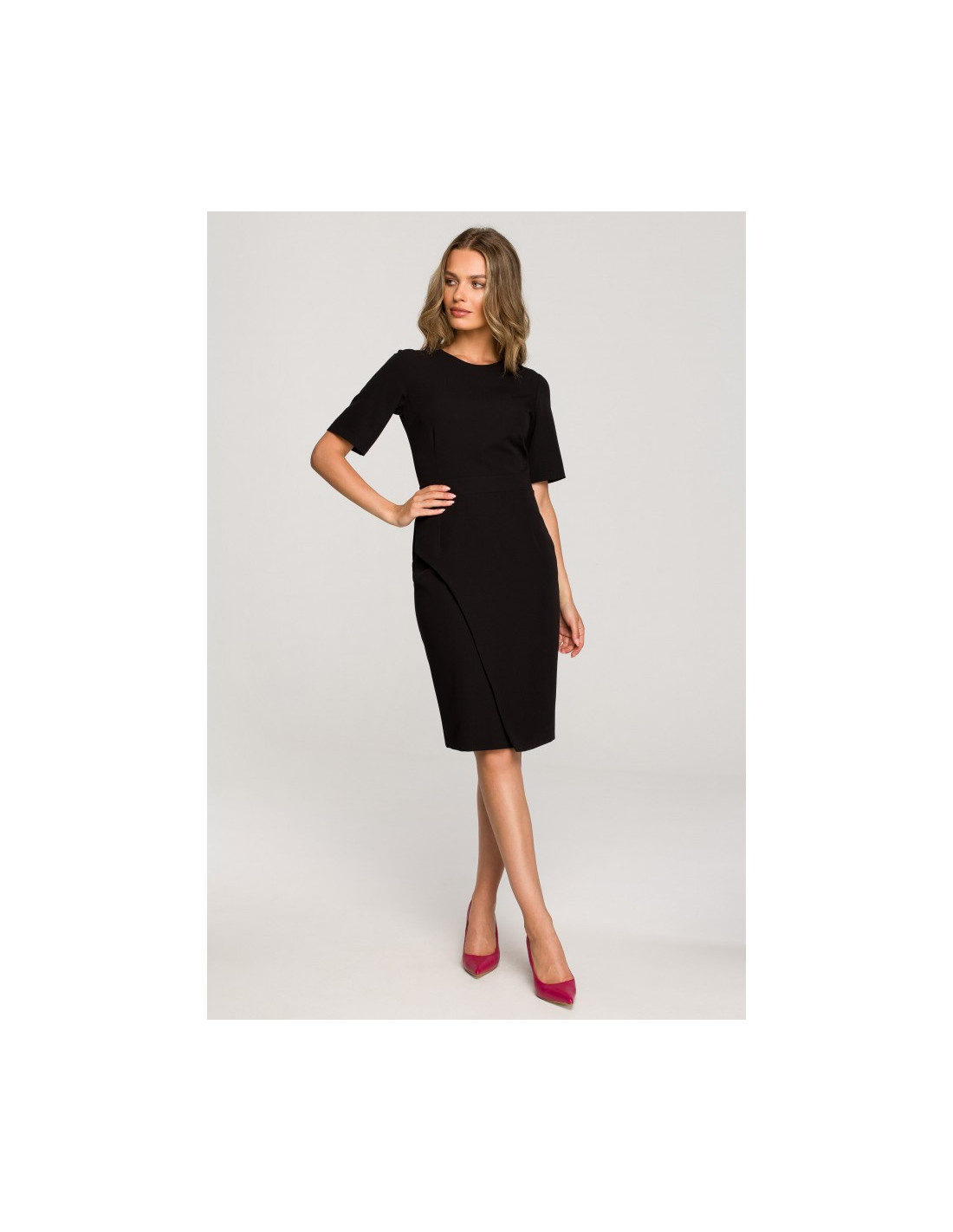 S317 Juodos spalvos suknelė su sijonu su užlenkimais