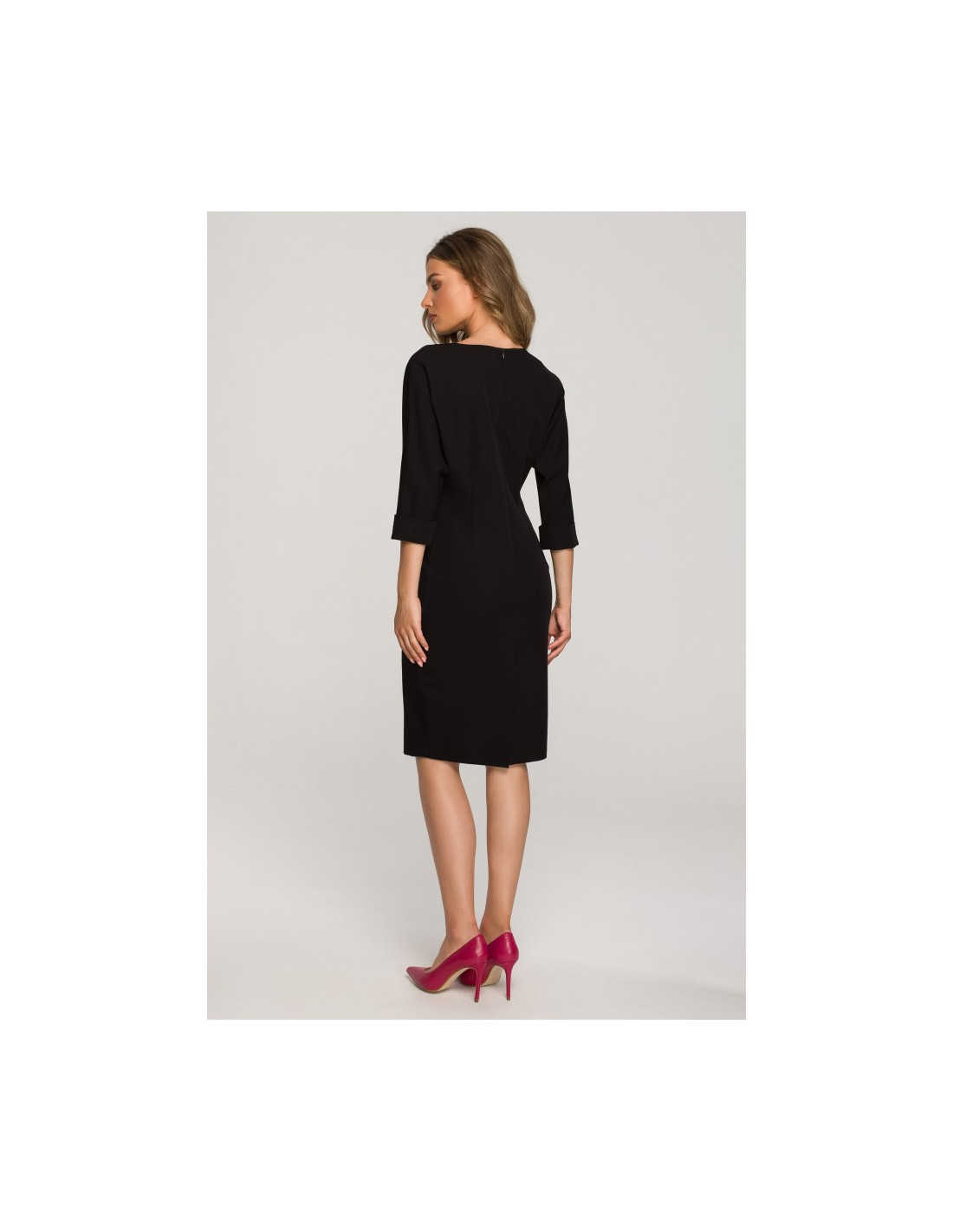 S324 Vienspalvė suknelė kimono rankovėmis - juoda