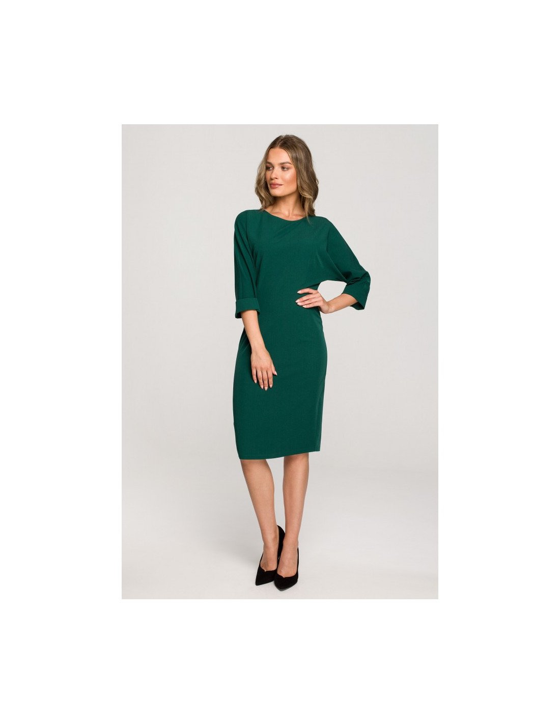 S324 Vienspalvė suknelė kimono rankovėmis - žalia