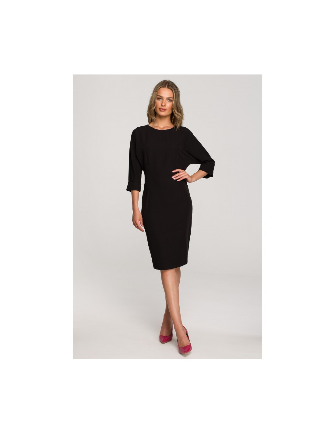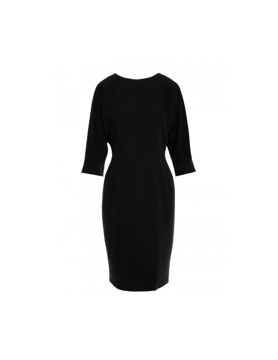 S324 Vienspalvė suknelė kimono rankovėmis - juoda
