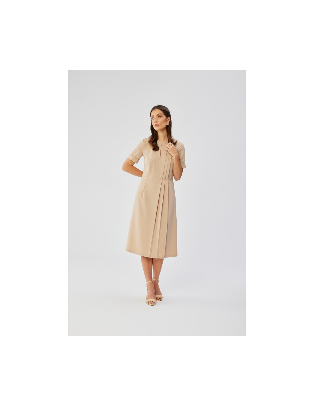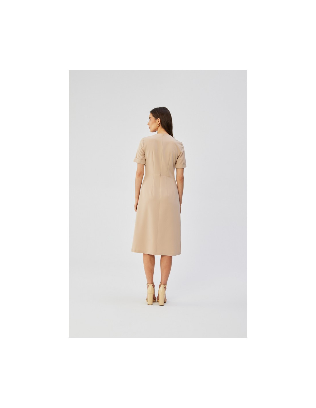 617-1 Ilga undinės suknelė su juodais nėriniais ir tinkleliu - MOCHA MOUSSE