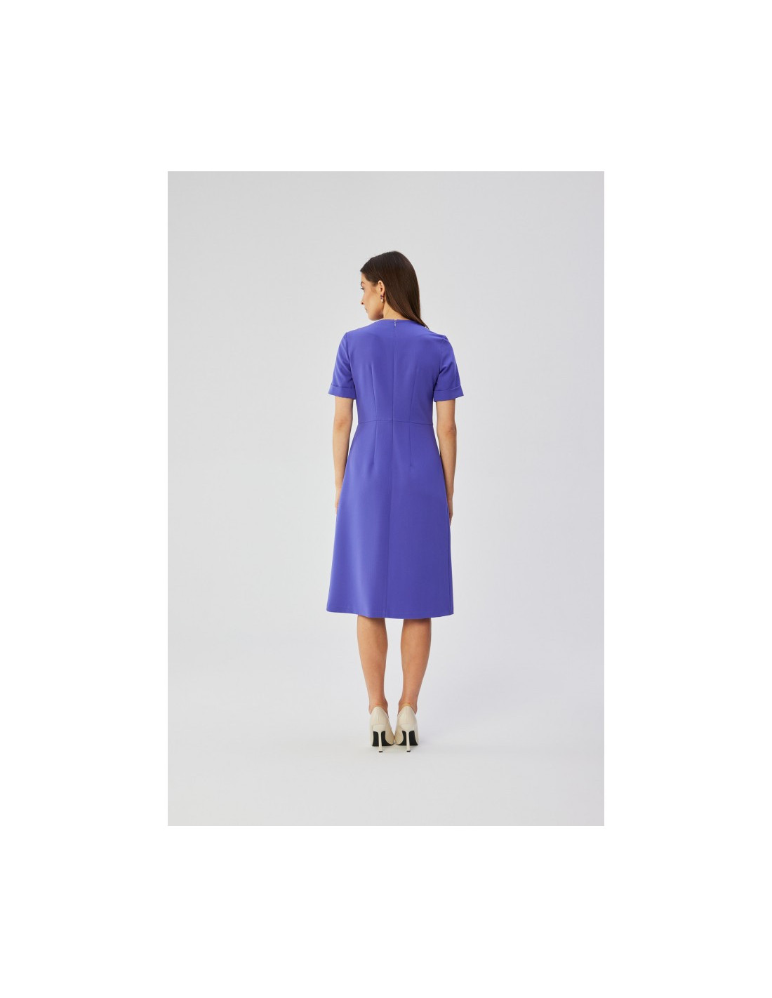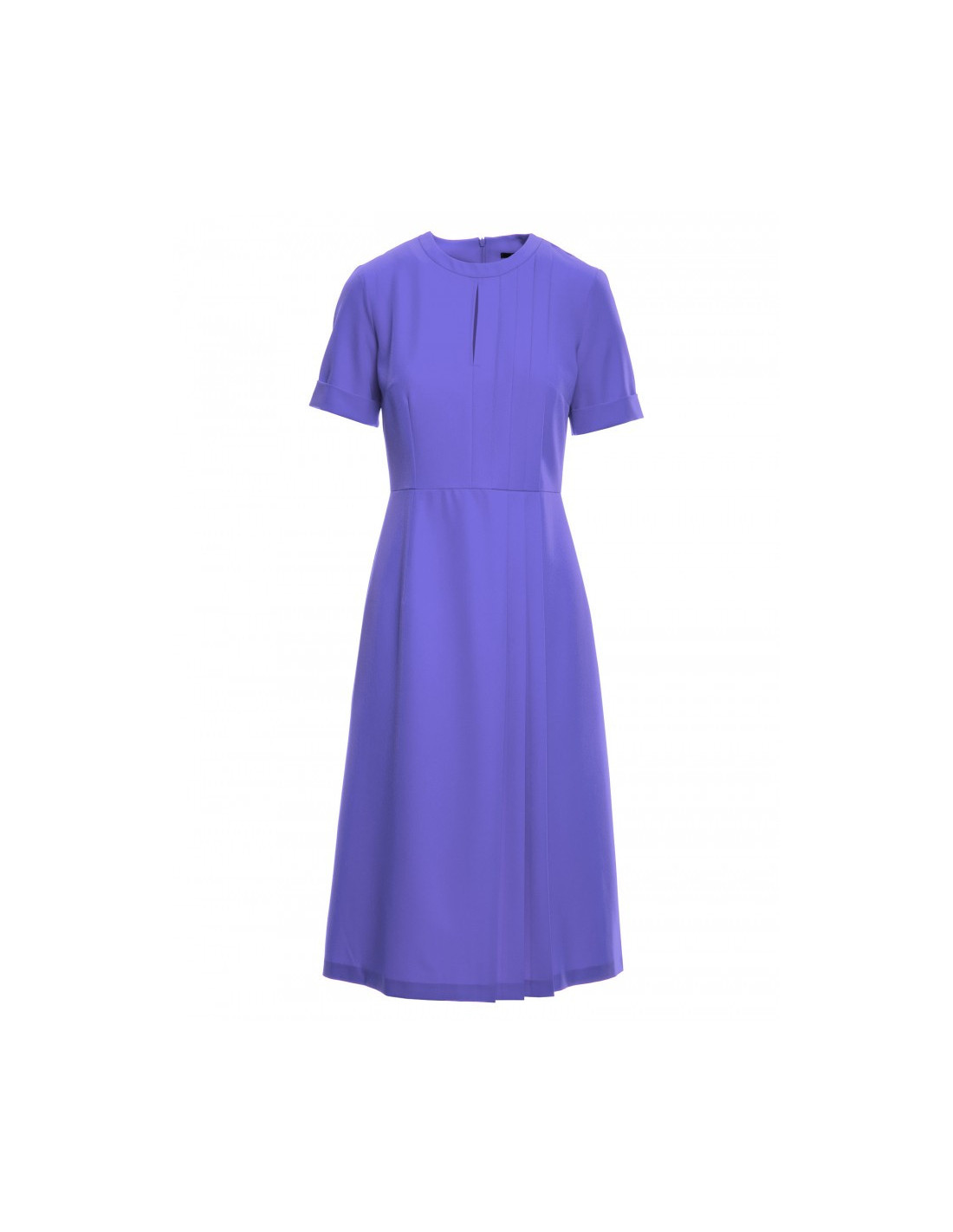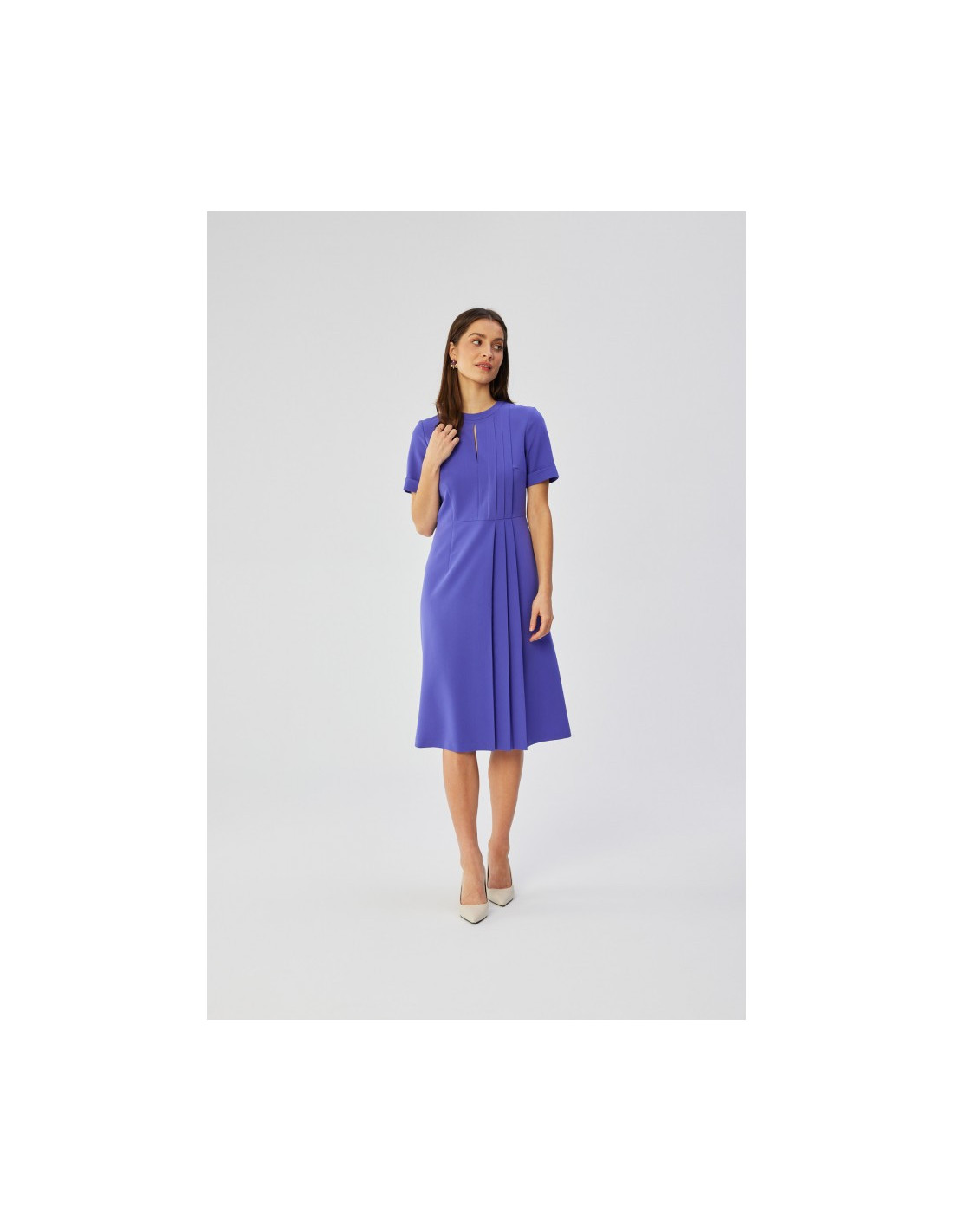65% polyester 30% viscose 5% elastanase PRODUCT DETAILS:      woven fabric shift dress with decorative folds on the side  keyhole neckline short sleeves with turn-ups below knee length  hidden back zip unlined our model is 176 cm tall and wears size S designed and made in Poland