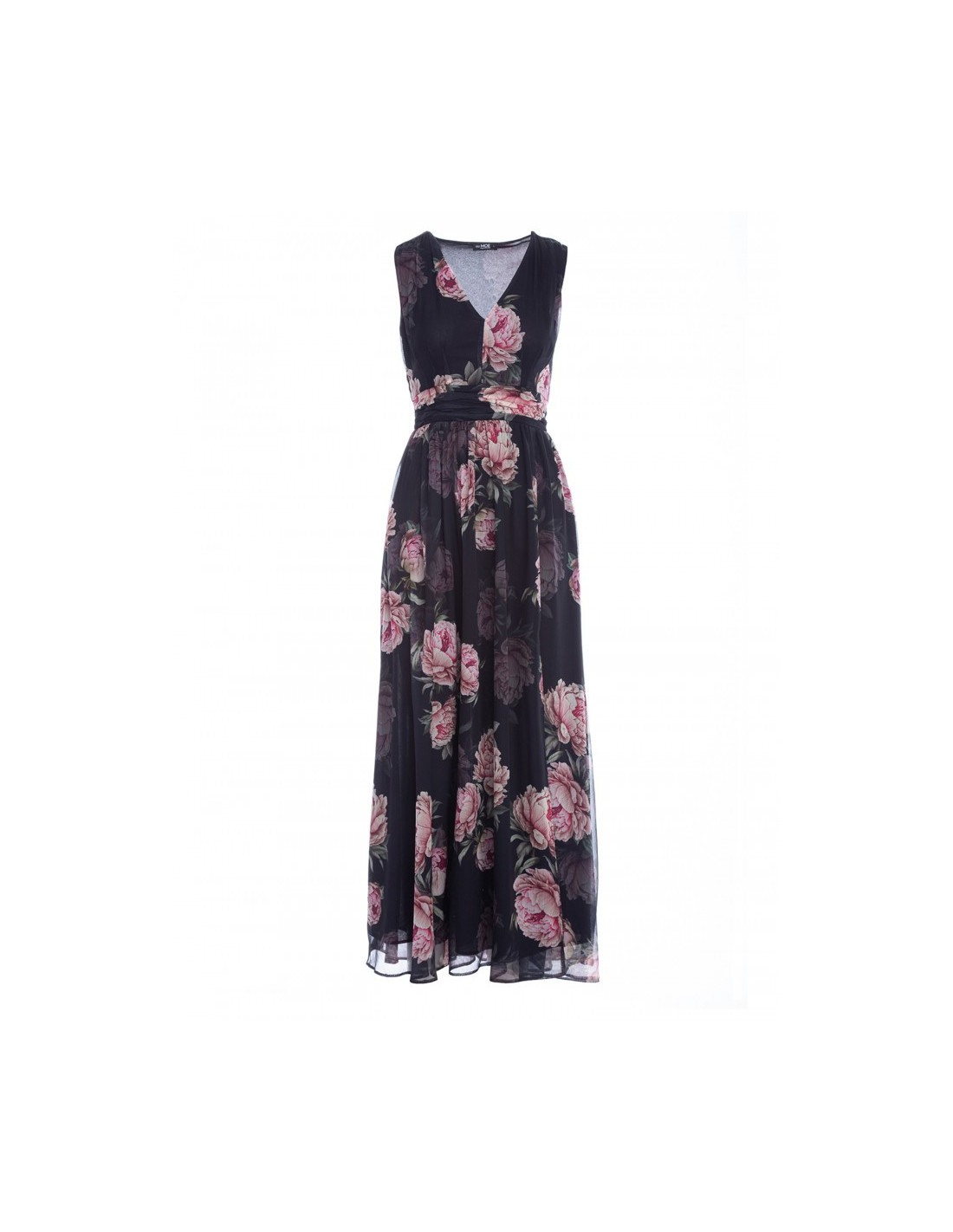 95% polyester 5% elastanase PRODUCT INFORMATION: woven chiffon fabric maxi length chiffon dress fit and flare design with high split in the front sleeveless top with deep V neckline partially elasticated waist hidden side zip fully lined our model is 171 cm tall and wears size S designed and made in Poland