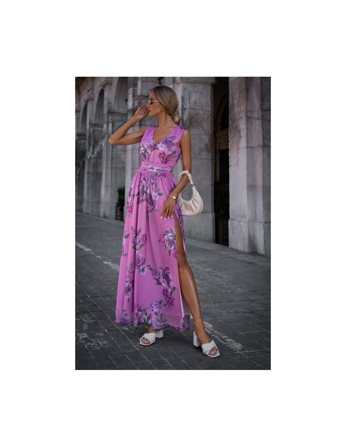95% polyester 5% elastanase PRODUCT INFORMATION: woven chiffon fabric maxi length chiffon dress fit and flare design with high split in the front sleeveless top with deep V neckline partially elasticated waist hidden side zip fully lined our model is 171 cm tall and wears size S designed and made in Poland