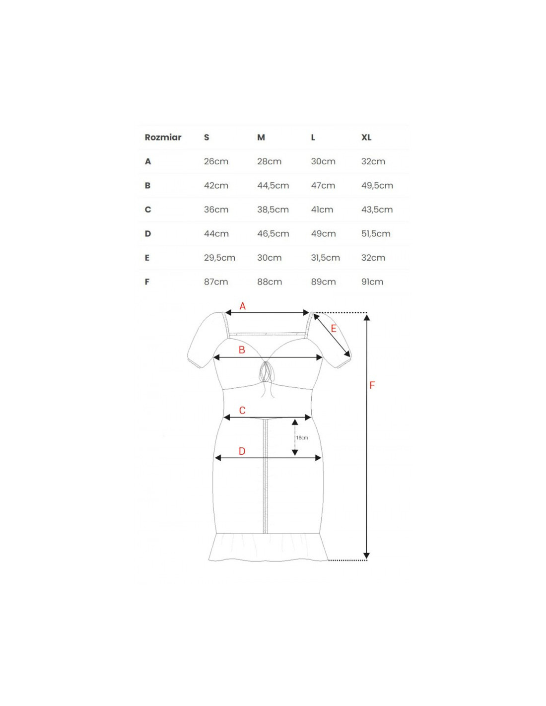 95% polyester 5% elastanase PRODUCT INFORMATION: woven crepe fabric mini length dress with a tie detail in the  neckline ruched front finished with a ruffle short elasticated sleeves hidden back zip unlined our model is 171 cm tall and wears size S designed and made in Poland