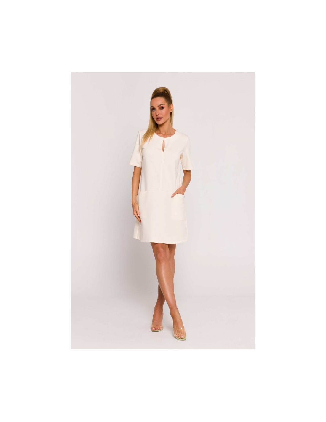 M788 Trapeze dress with front pockets - cream