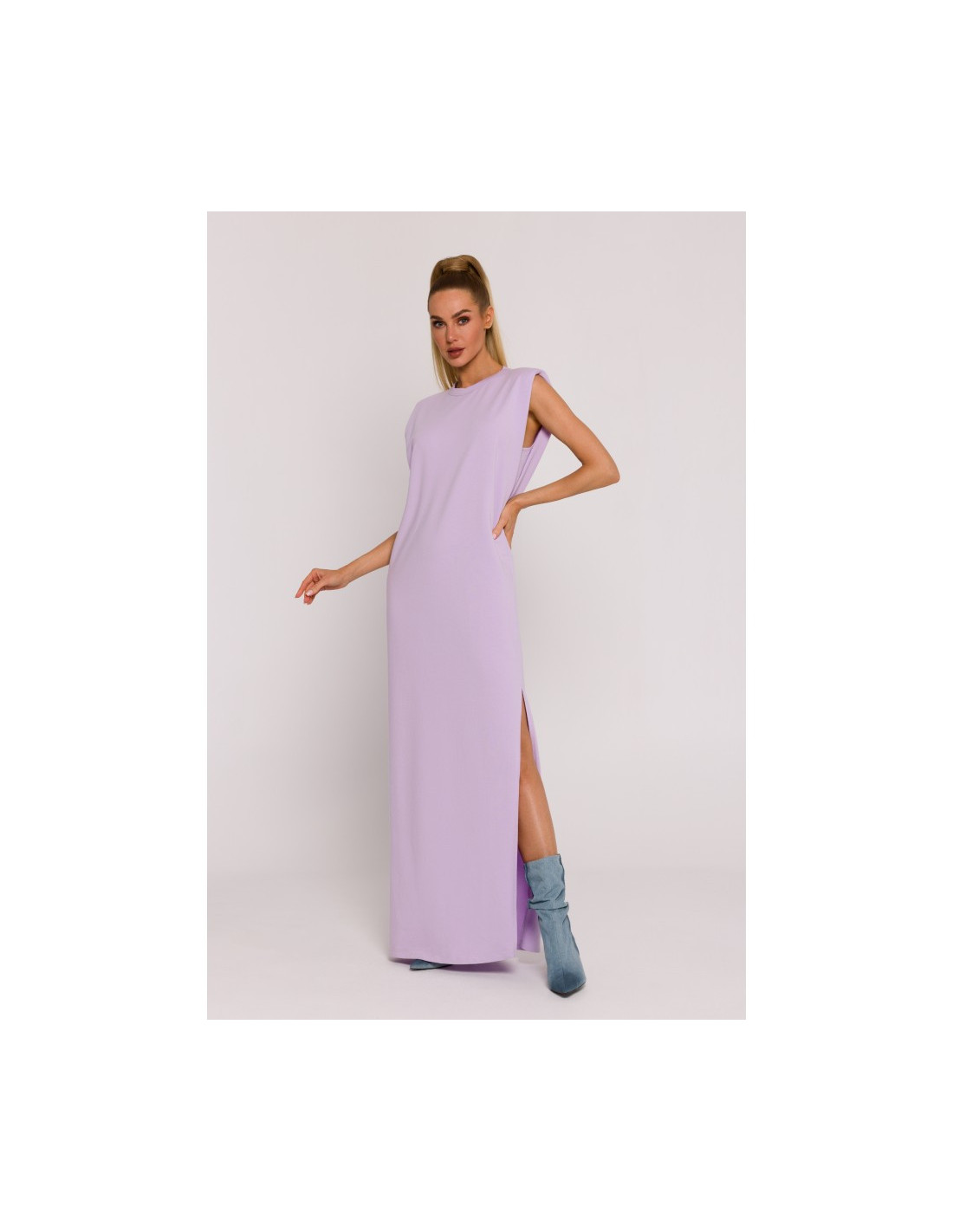 92% cotton 8% elastanase PRODUCT INFORMATION: knit fabric oversized maxi dress with a split on the side pulled over the head sleeveless design with padded shoulders decorative logo badge in the back unlined our model is 171 cm tall and wears size S designed and made in Poland