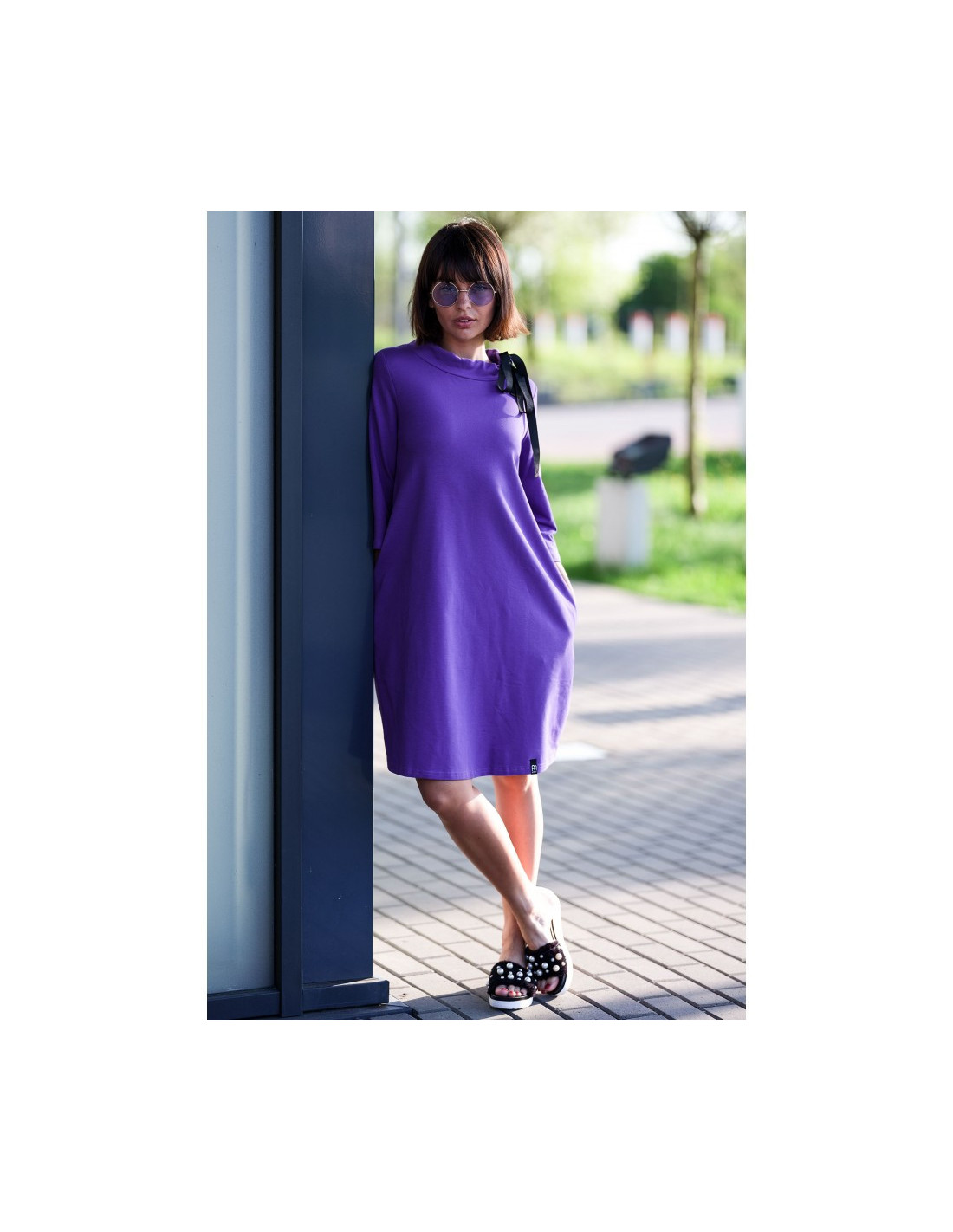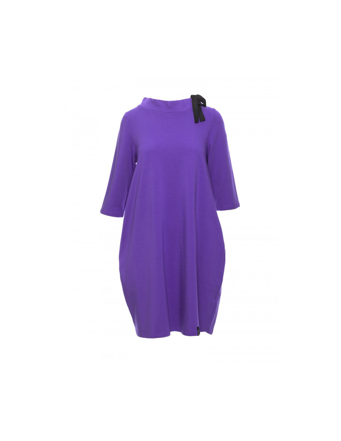 B070 Marškininė suknelė su kaklo raišteliu - violetinė