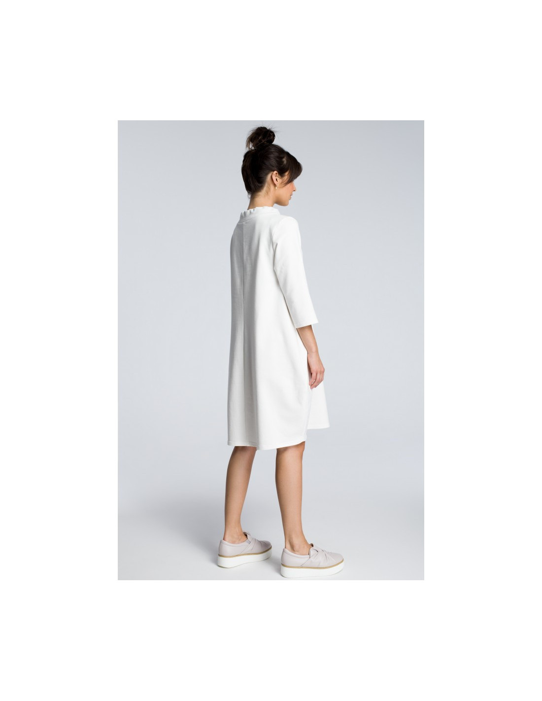 Patogi suknelė su kišenėmis ir dekoratyviniu kaklo raišteliu, skirta laisvesnio kirpimo mėgėjoms. Šaltesnėmis dienomis ją galima vilkėti kaip tuniką prie kelnių ar leginsų.