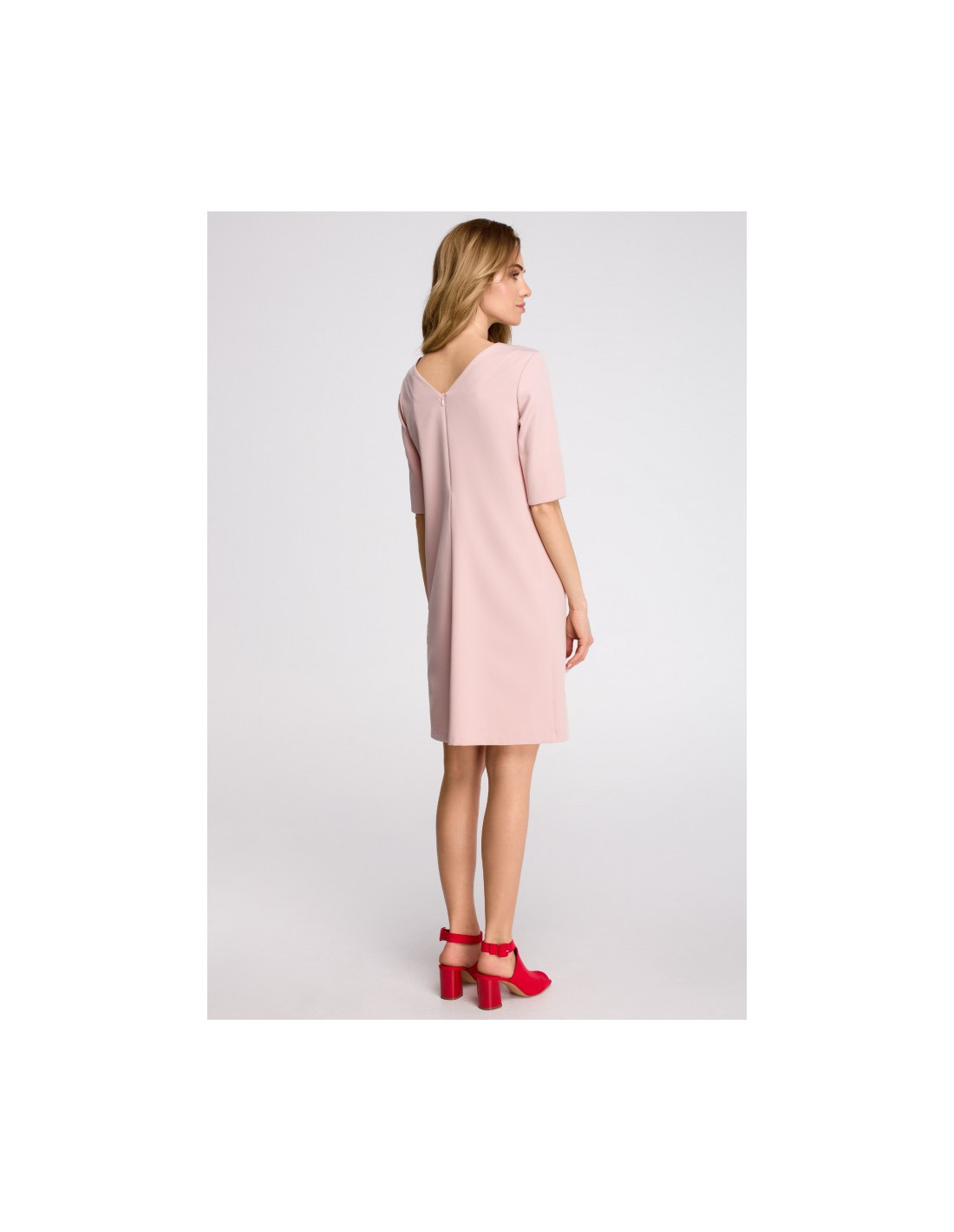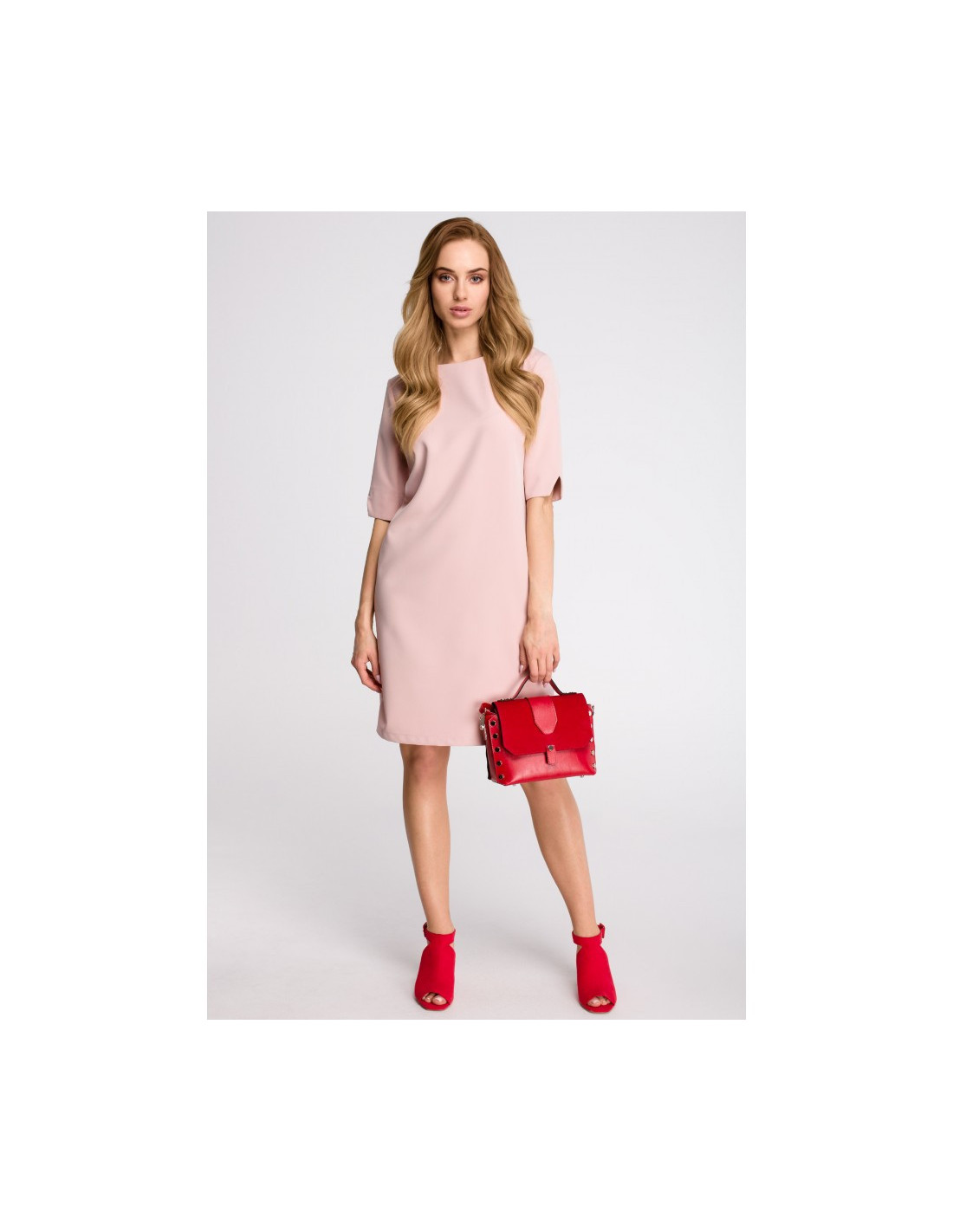 S113 Skardinė suknelė su įžūlia iškirpte nugaroje - pudros mėlyna