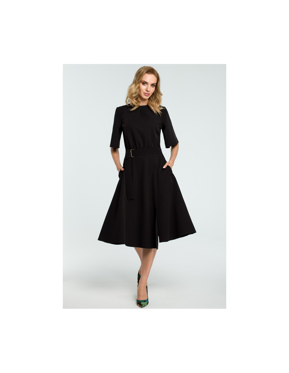 Ši suknelė išsiskiria lengvumu, lengvumu ir moteriškomis detalėmis, tokiomis kaip raukšlė iškirptėje ir šoninis sijono skeltukas, todėl puikiai tinka tiek dienai, tiek vakarui.