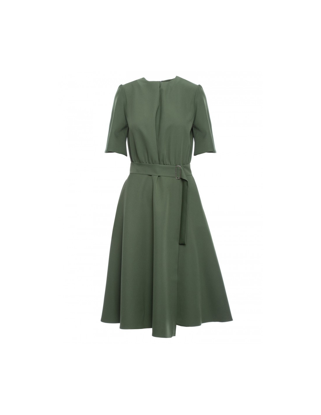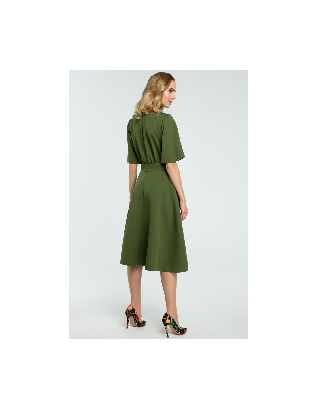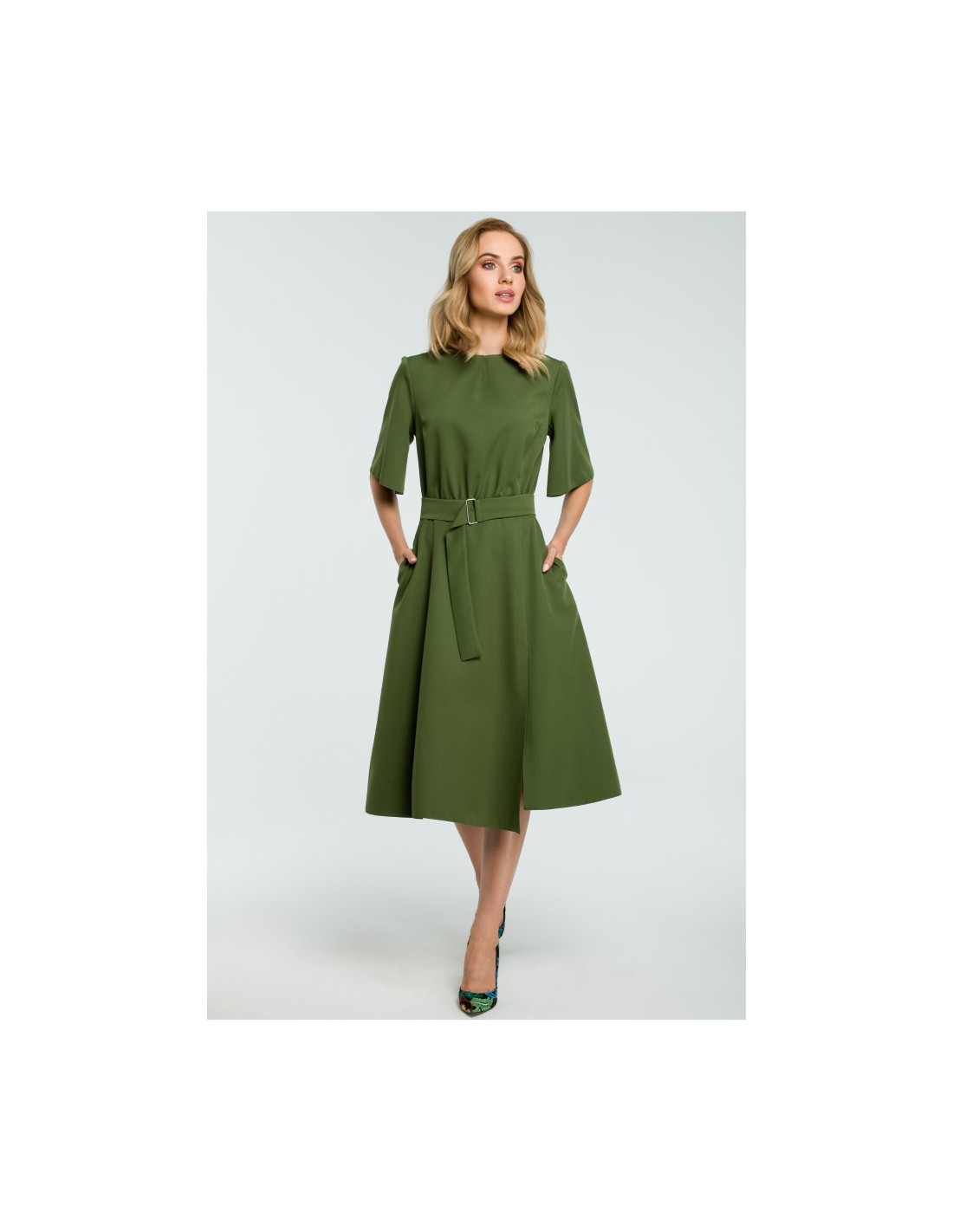 95 % poliesteris 5 % elastano Ši suknelė išsiskiria lengvumu, lengvumu ir moteriškomis detalėmis, tokiomis kaip raukšlė iškirptėje ir šoninis sijono skeltukas, todėl puikiai tinka tiek dienai, tiek vakarui. INFORMACIJA APIE GAMINĮ: audinys šiek tiek platėjantis kirpimas apačioje su šoniniu prapjovimu viršutinė dalis su klostėmis ties iškirpte trumpos rankovės, šiek tiek praplatintos ilgis žemiau kelių be pamušalo paslėptas užtrauktukas nugaroje pridedamas diržas mūsų modelis yra 171 cm ūgio ir dėvi S dydį