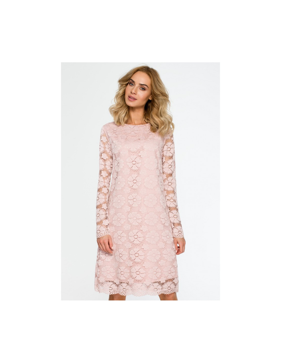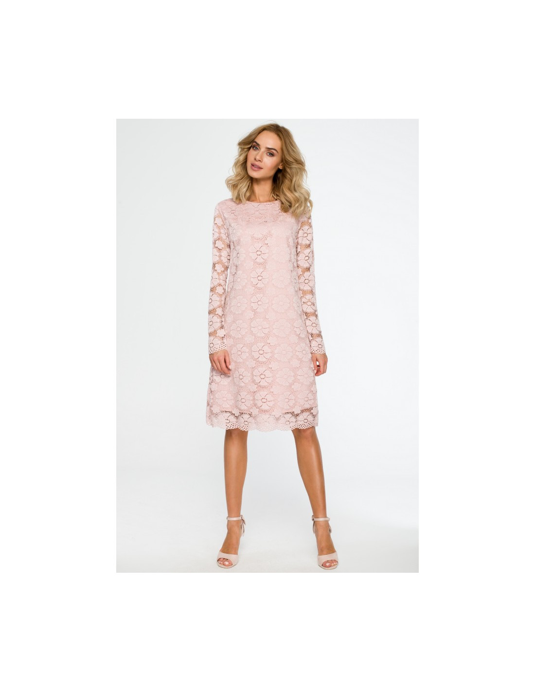 Ši A formos suknelė ilgomis rankovėmis, užbaigta originalia apačia, yra paprasčiausia ir elegantiškiausia.