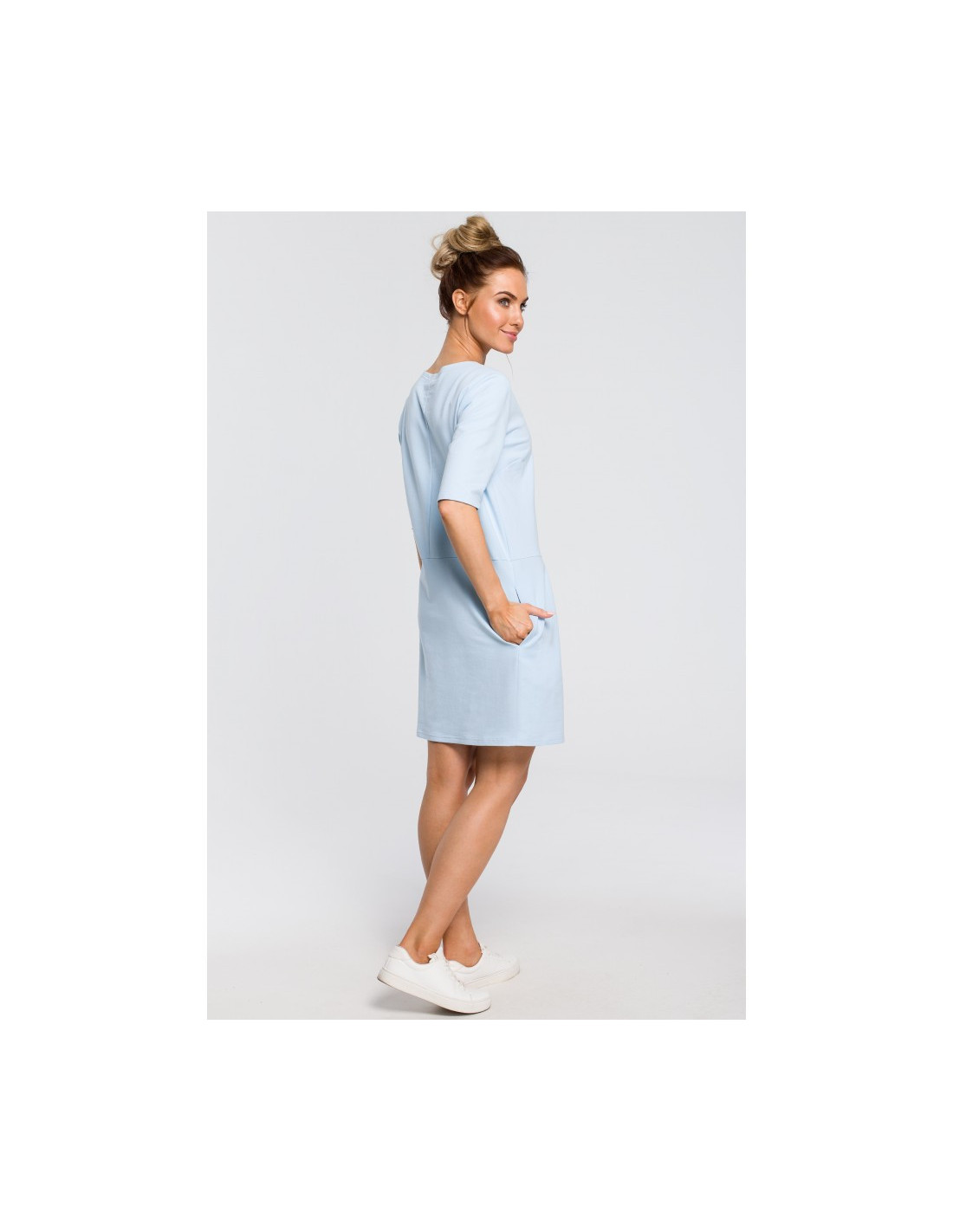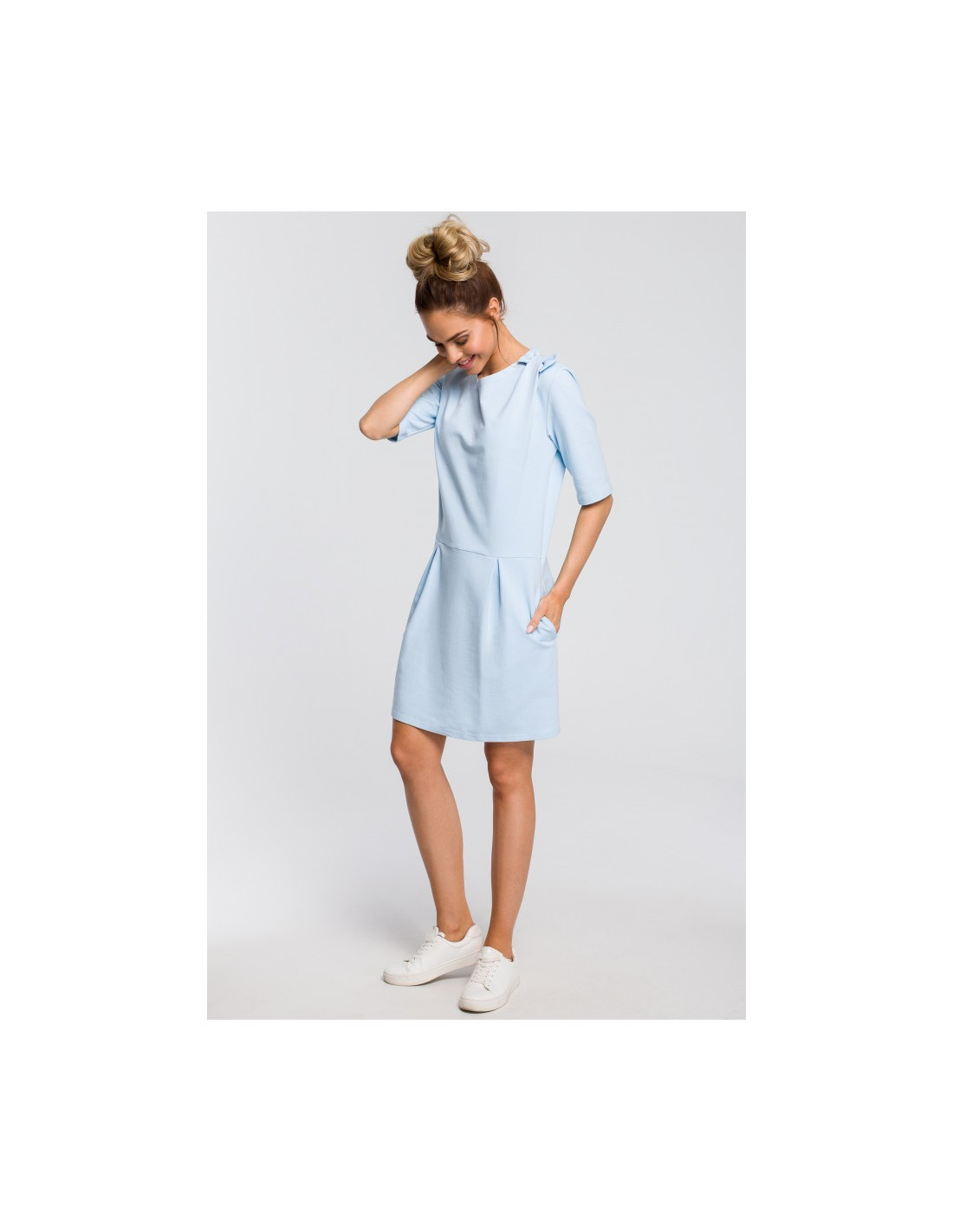 M422 Tiesi suknelė su lankeliu ant peties - mėlyna