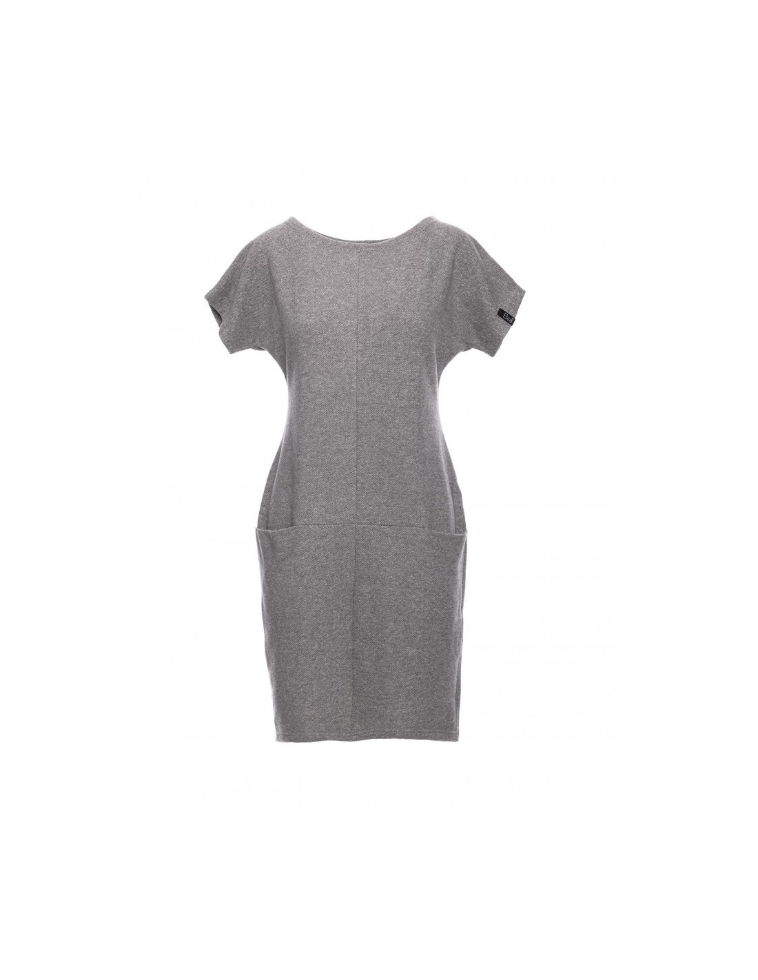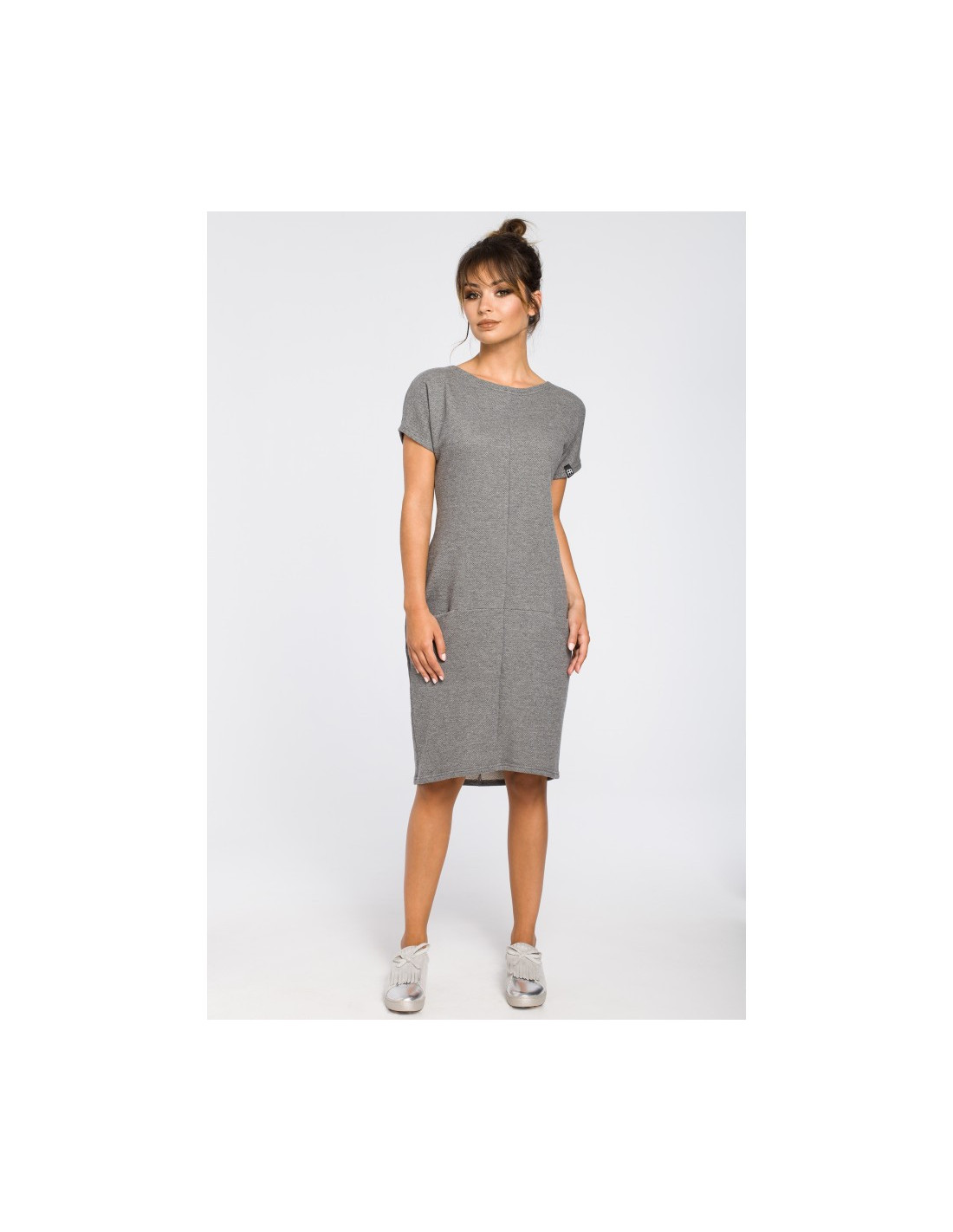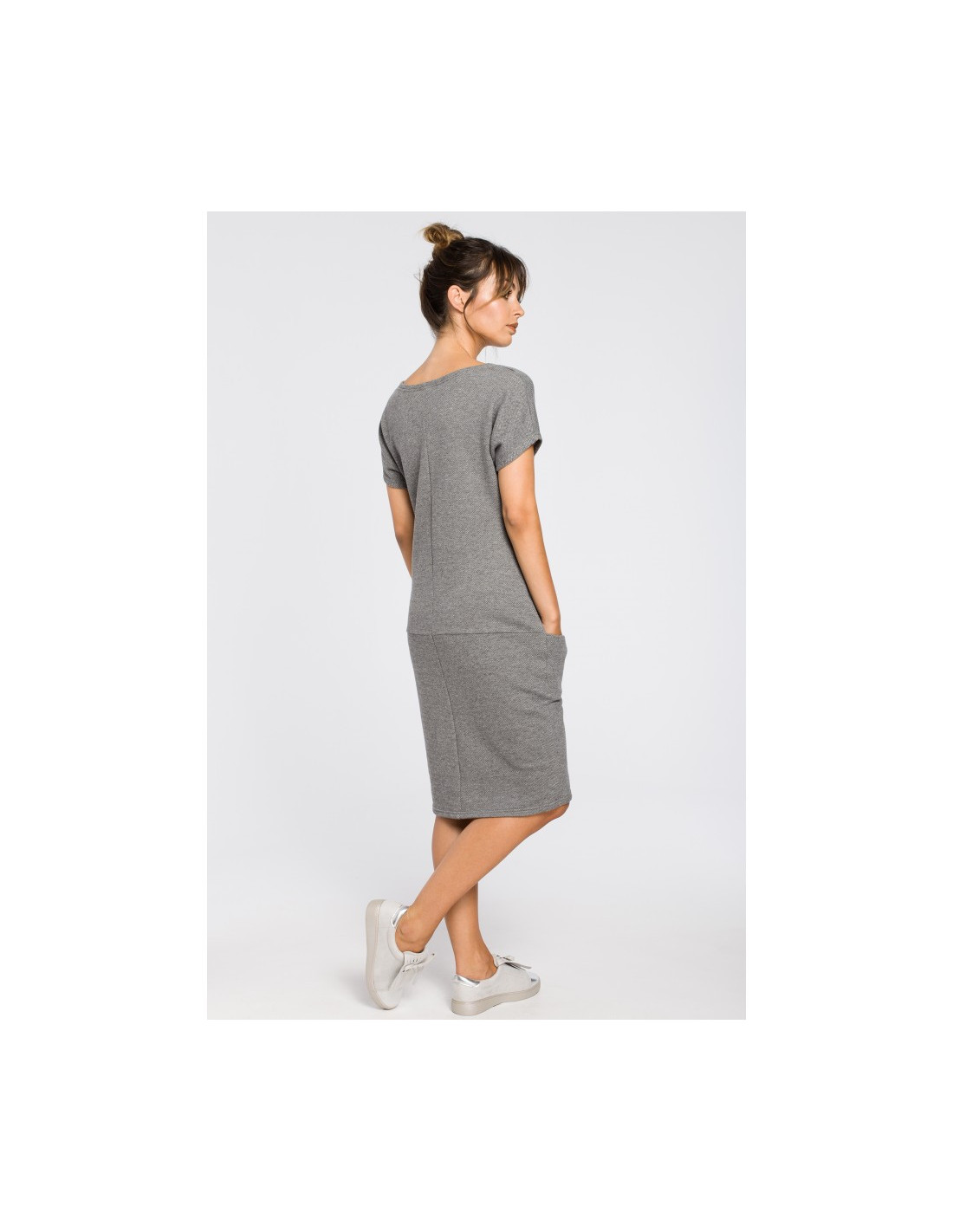 B050 Laisva midi suknelė su kišenėmis - pilka