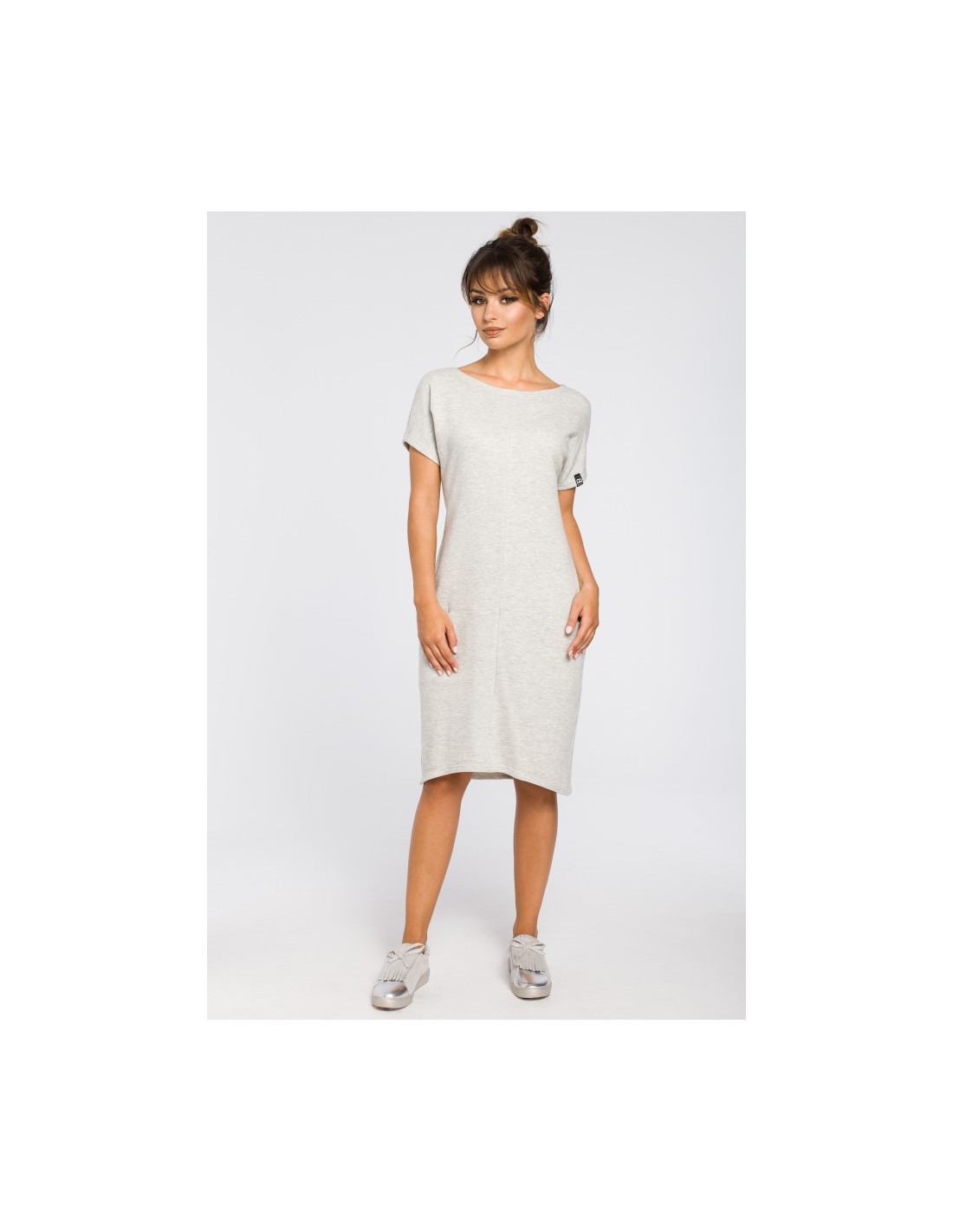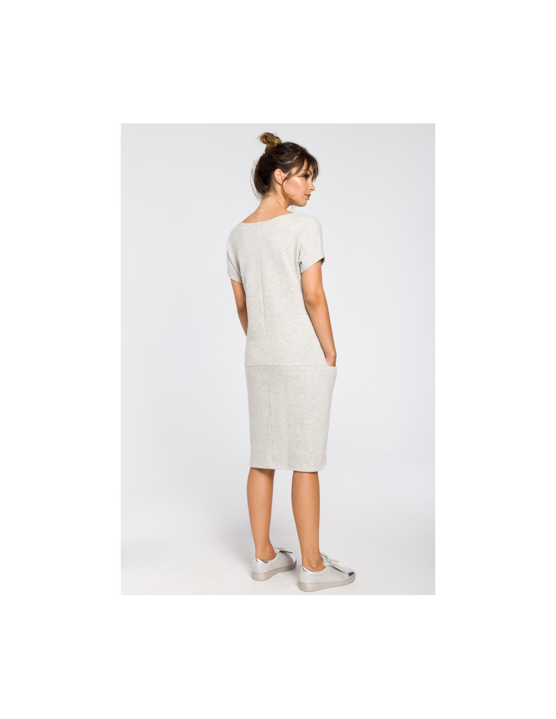 B050 Laisva midi suknelė su kišenėmis - pelenų pilka