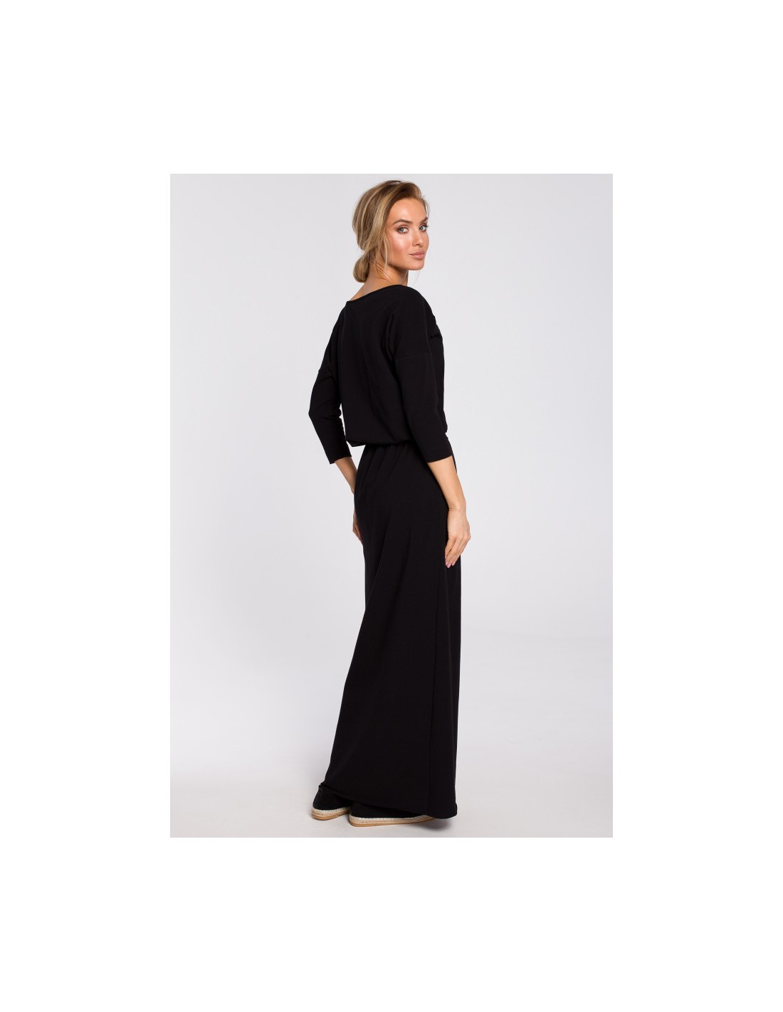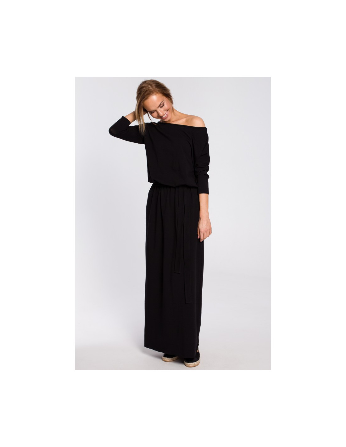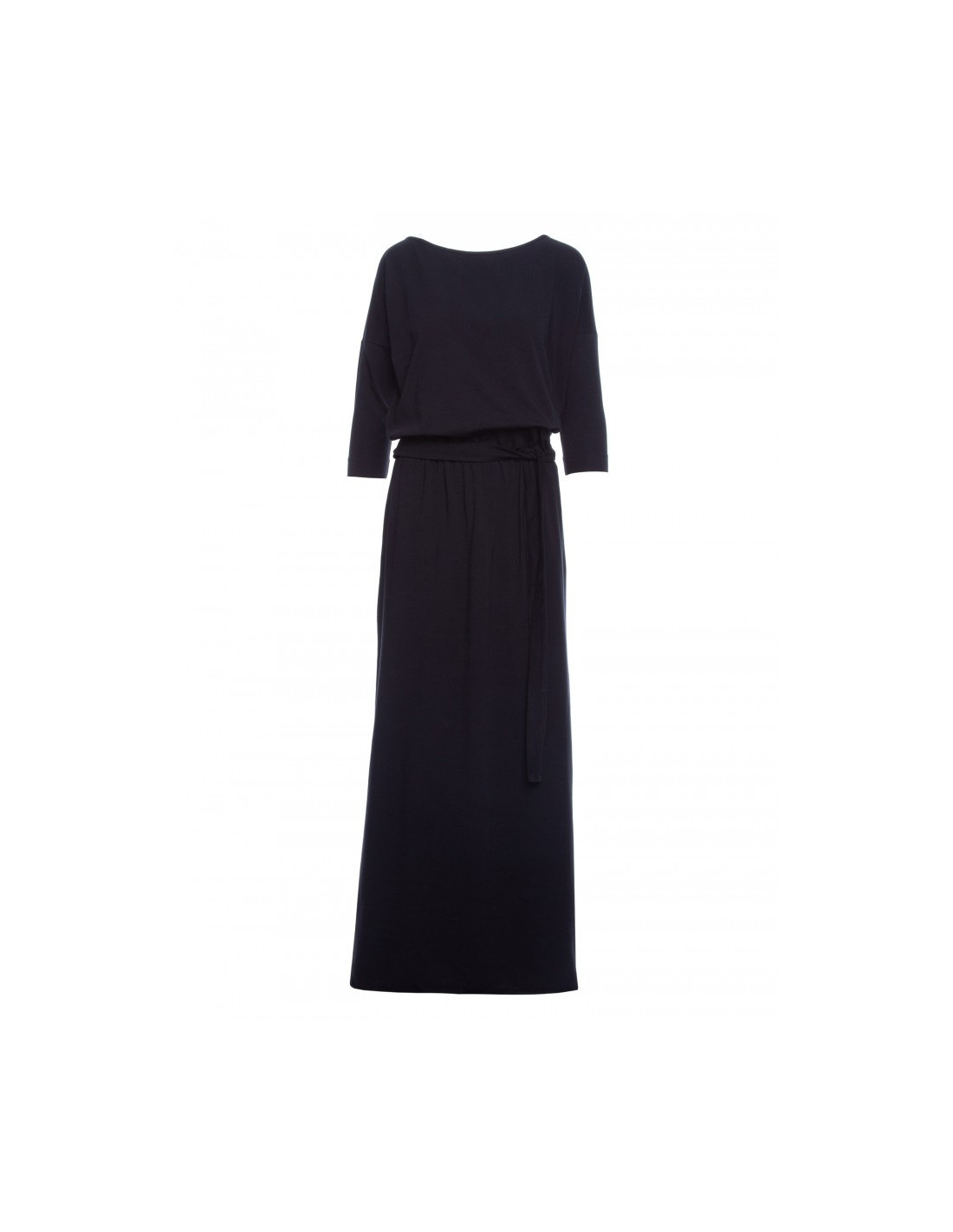 M435 Medvilninė maksi suknelė su diržu - juoda