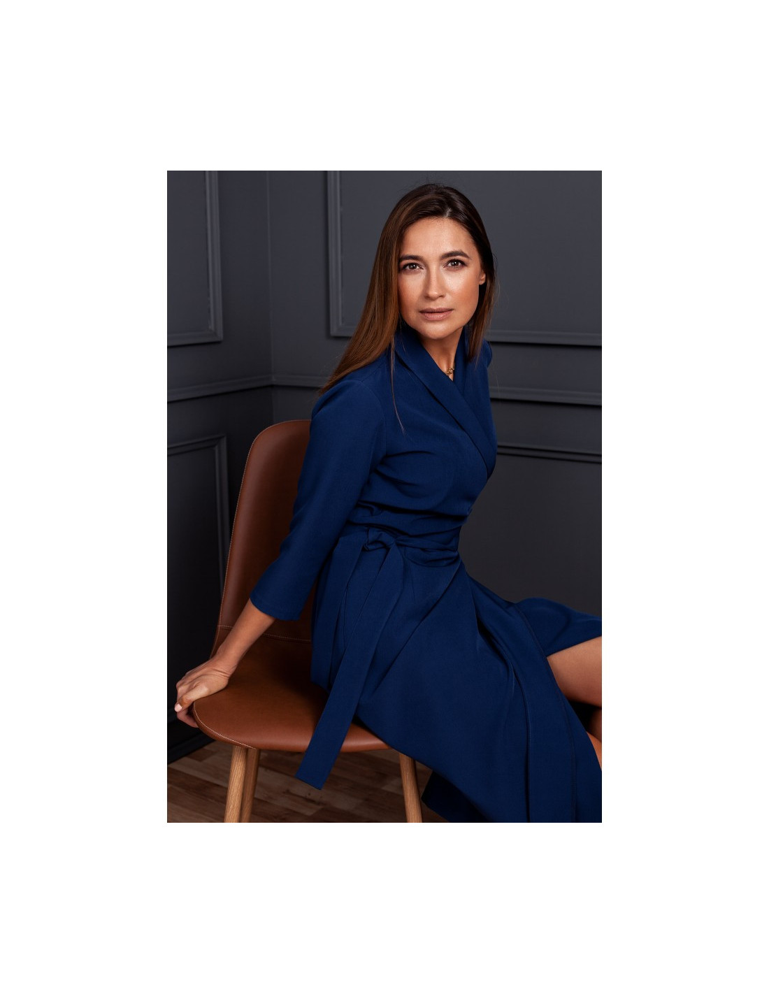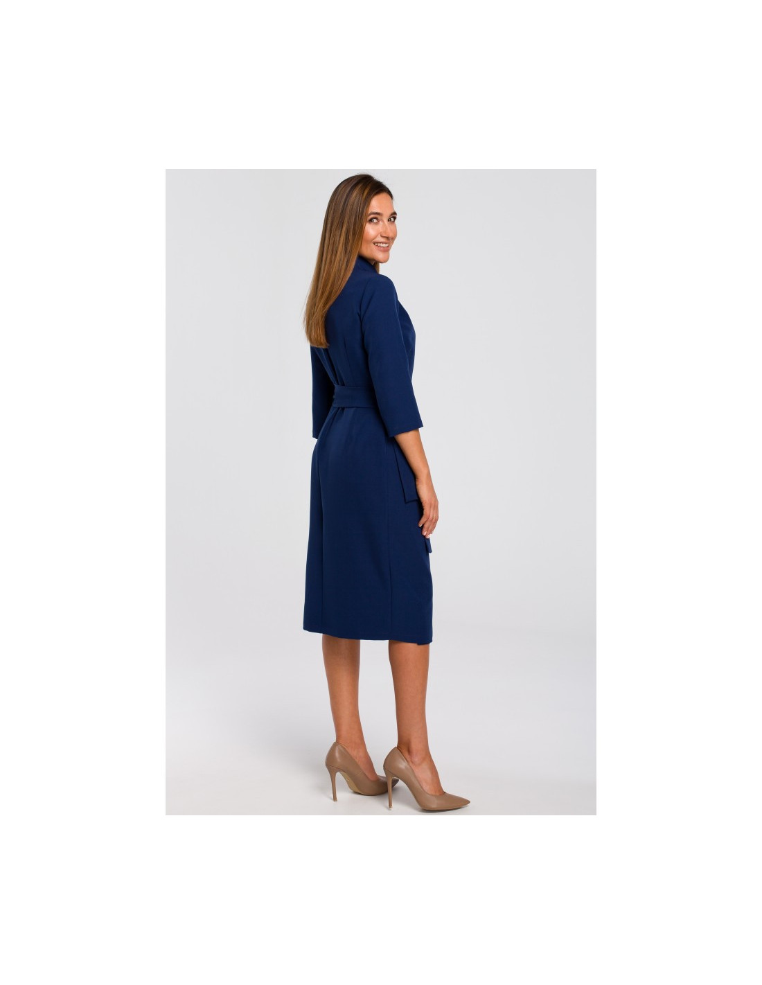 S175 Vokinė suknelė su diržu - tamsiai mėlyna