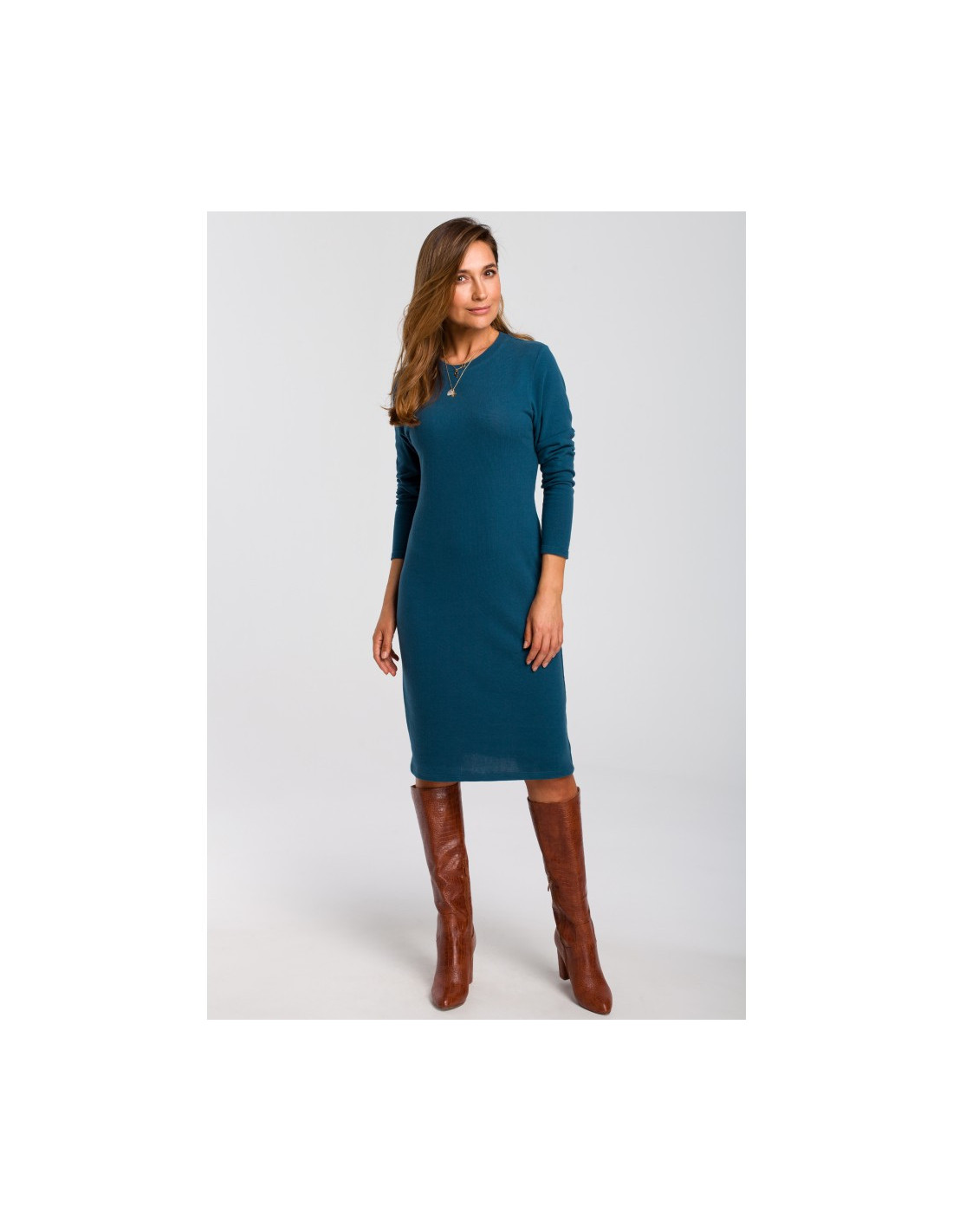S178 Megztinė suknelė ilgomis rankovėmis - jūrinė