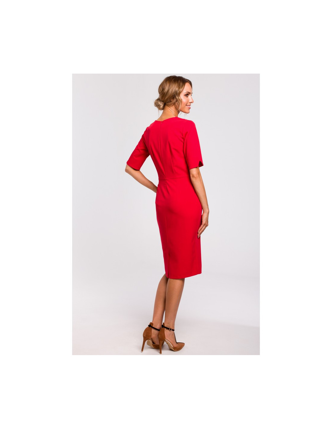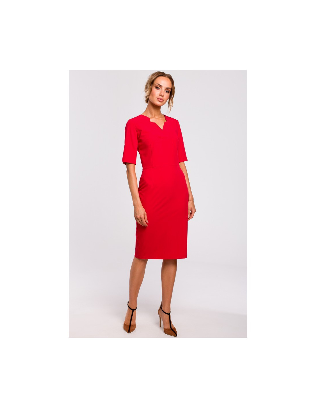 Subtili ir elegantiška - pieštuko formos suknelė paaukštintu liemeniu ir V formos iškirpte su iškarpymais. Minkšta biuro stiliaus suknelė.