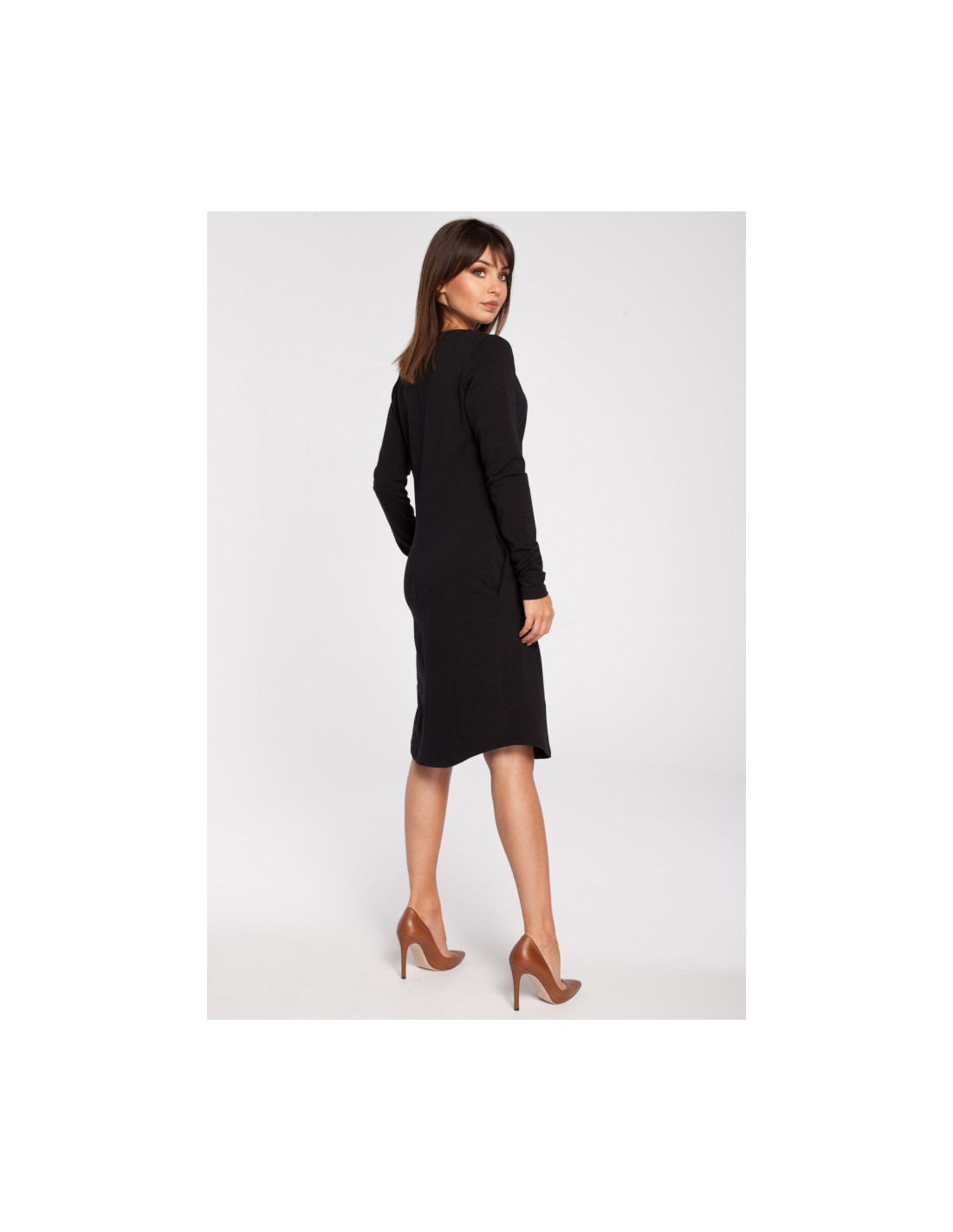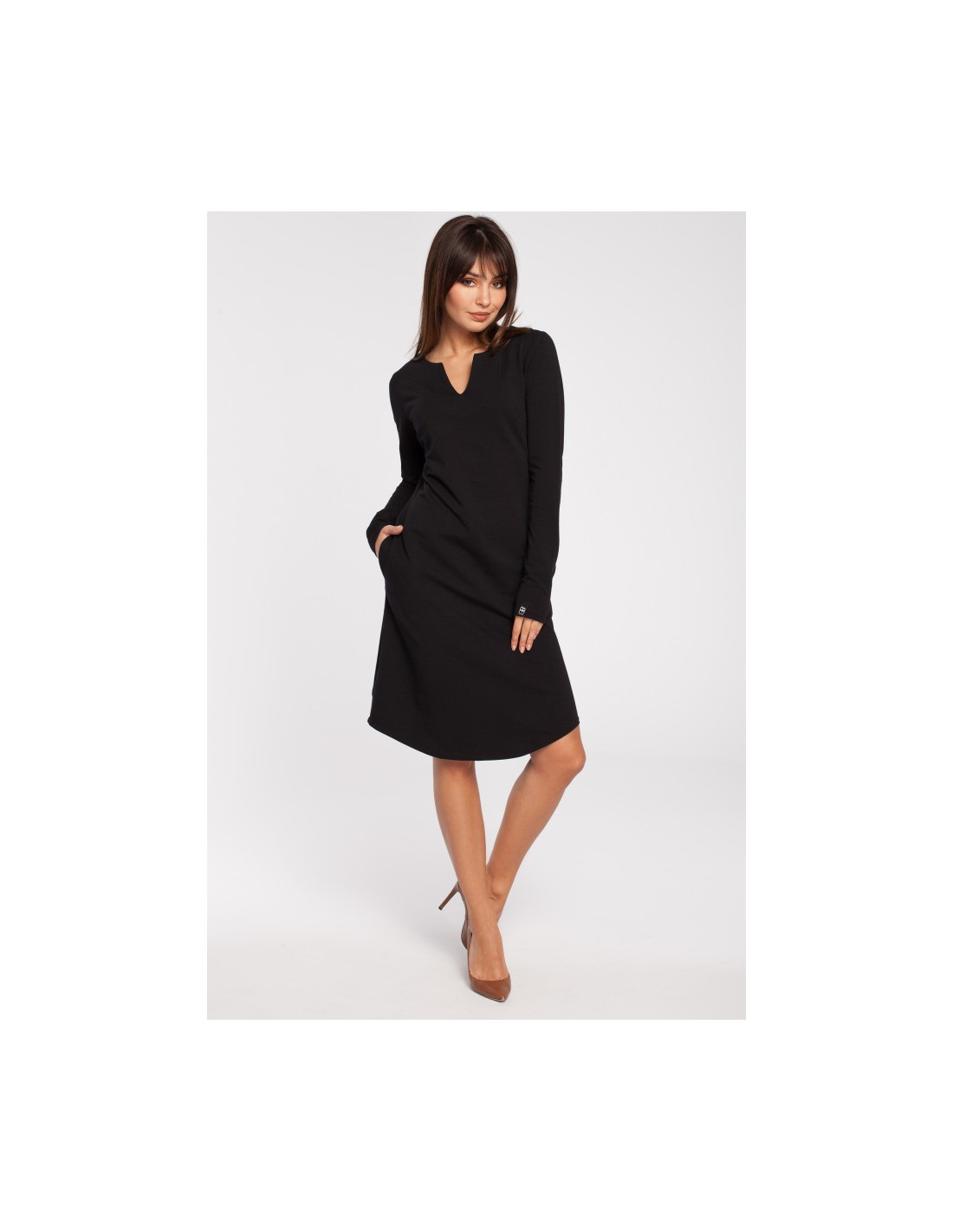 B017 Klasikinė suknelė su iškirpte ties kaklu - juoda