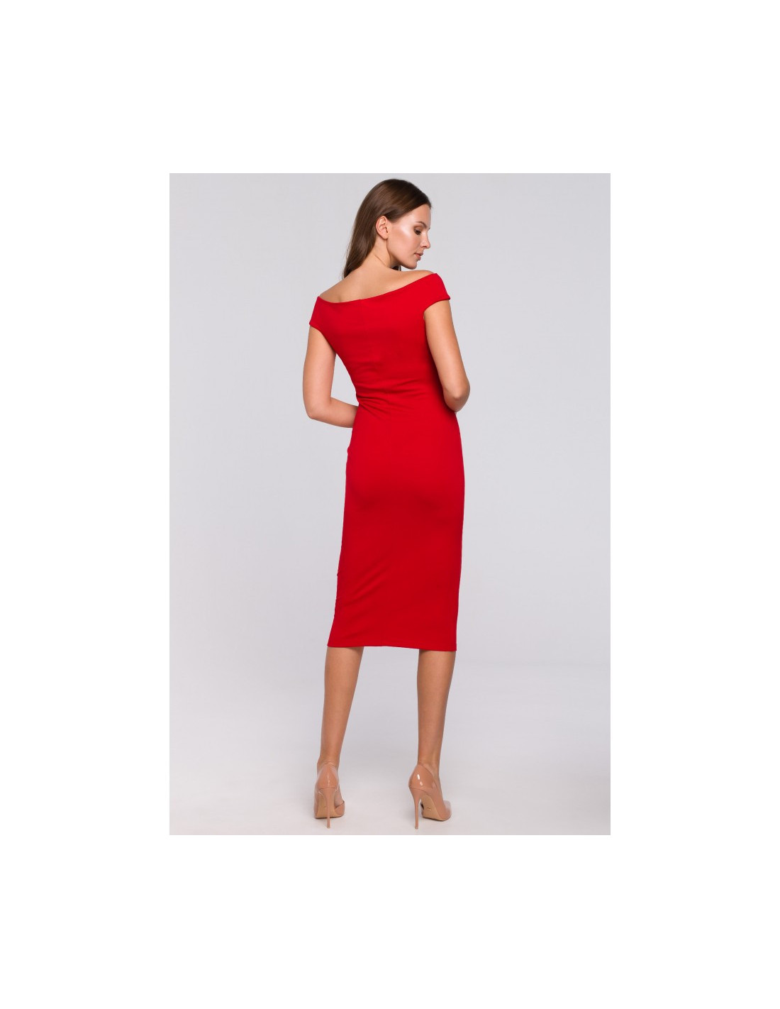 Ši itin moteriška midi ilgio suknelė yra puikus pasirinkimas, jei norite atskleisti savo pečius, ji tai puikiai padaro! Dėl prigludusio kirpimo jausitės graži ir seksuali, o dėl elastingo trikotažo audinio jūsų judesiai nebus suvaržyti.