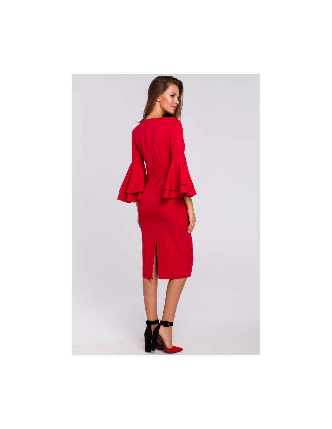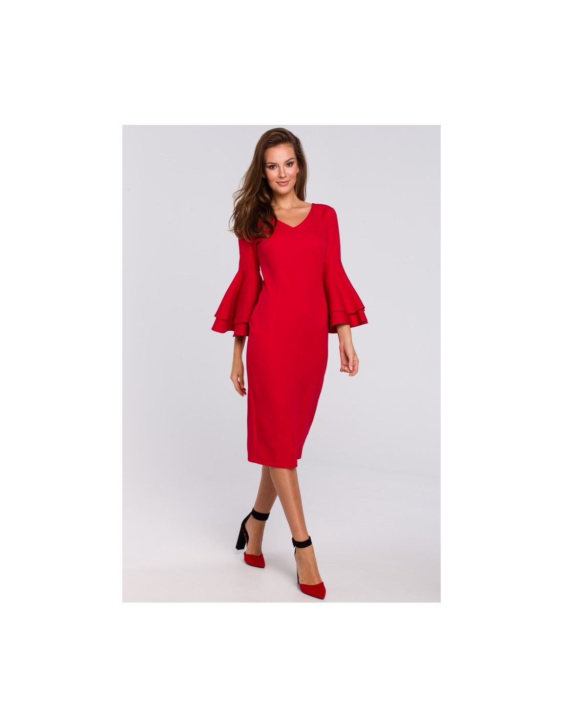 K002 Suknelė su raukiniais ties rankovėmis - raudona