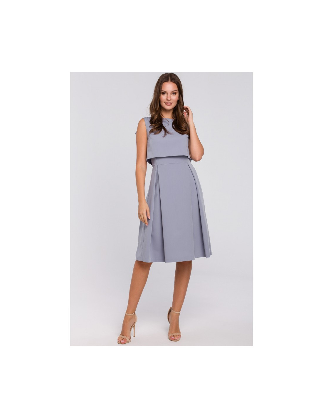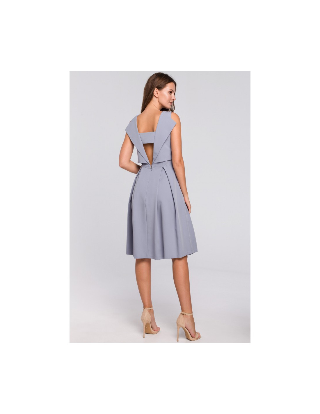 Modernumas ir mergaitiškumas viename! Suknelė unikali savo kirpimu - originali viršutinė dalis su gražiai atidengta nugara, platėjantis sijonas su klostėmis ir optiškai siaurėjančiu liemeniu. Tai suknelė daugeliui progų!