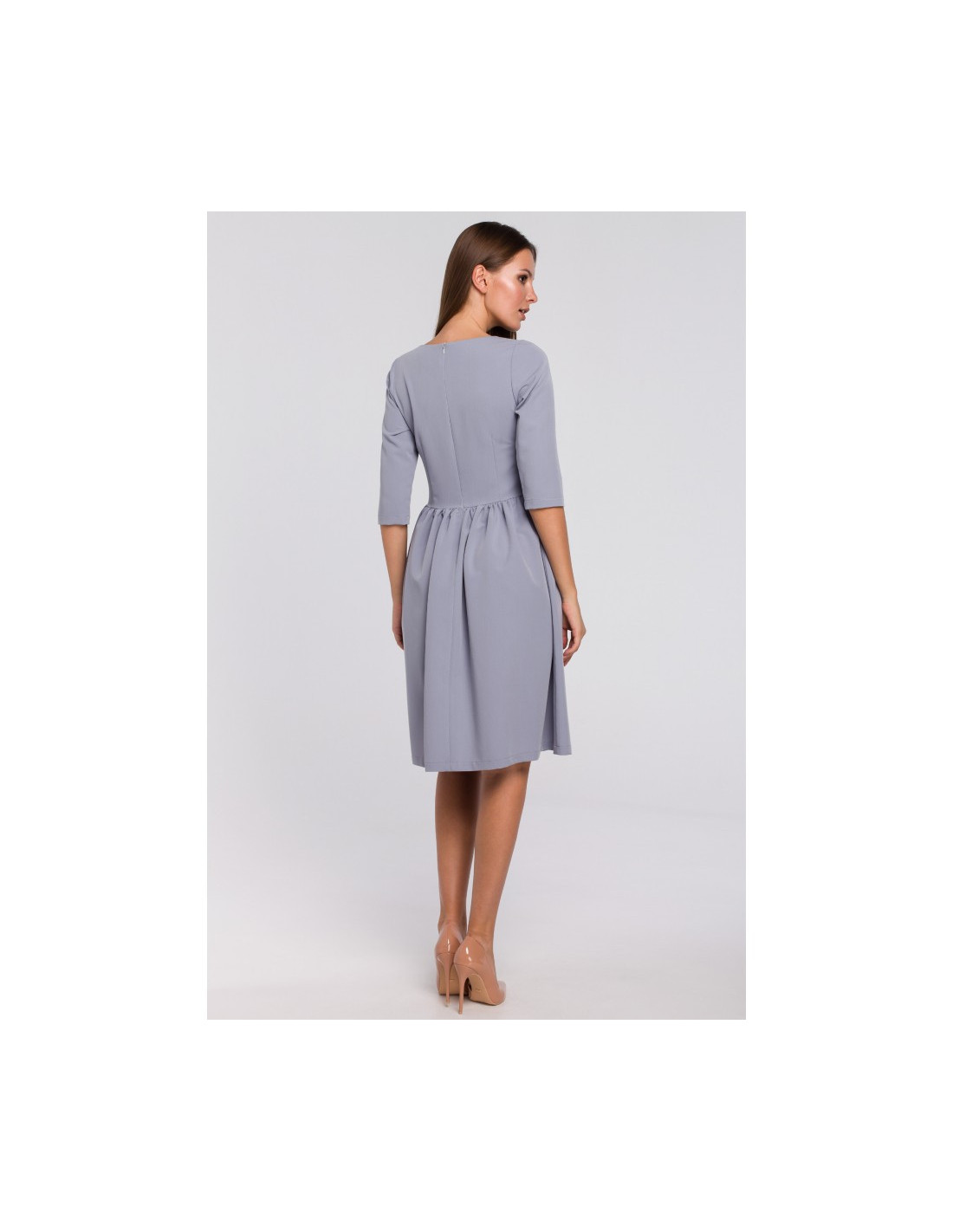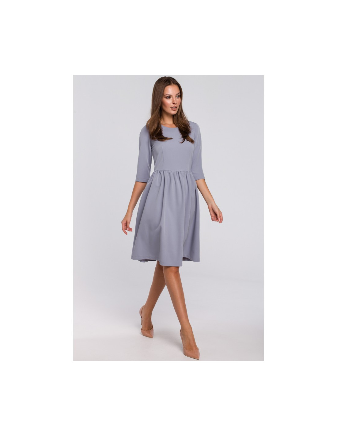 K010 Liemenį siekianti platėjanti suknelė - balandinės spalvos