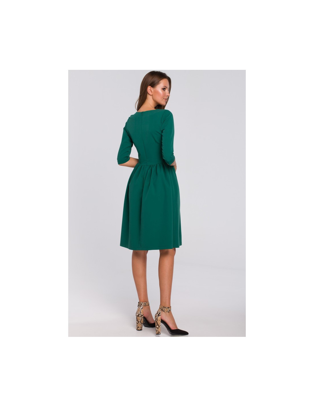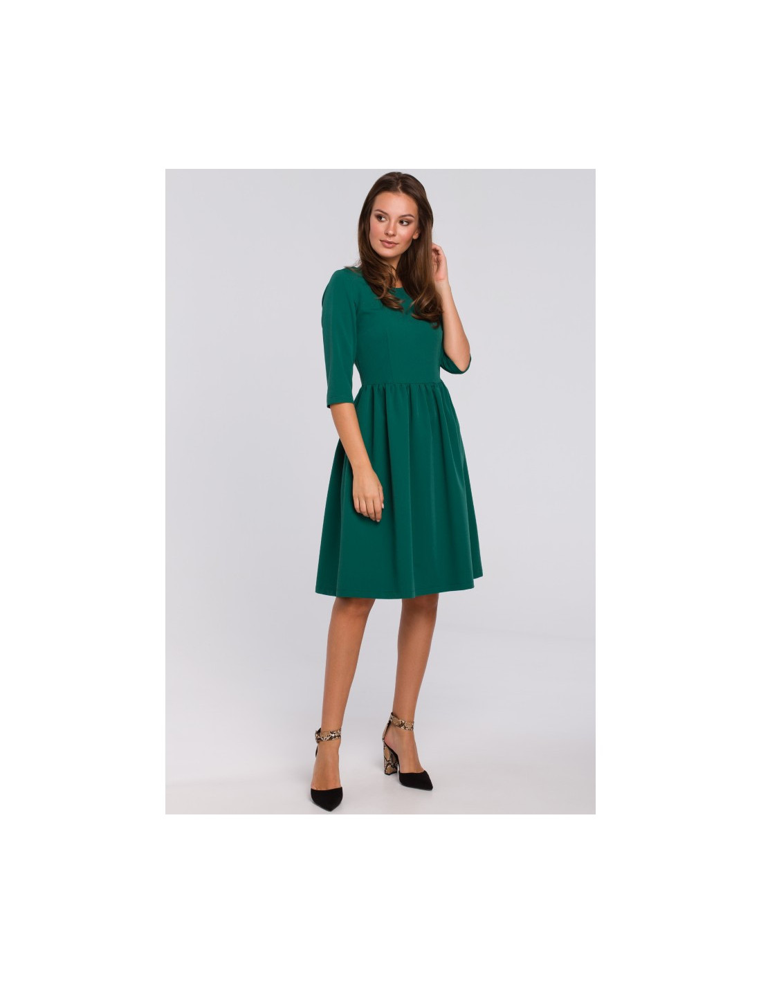 K010 Liemenį siekianti platėjanti suknelė - žalia