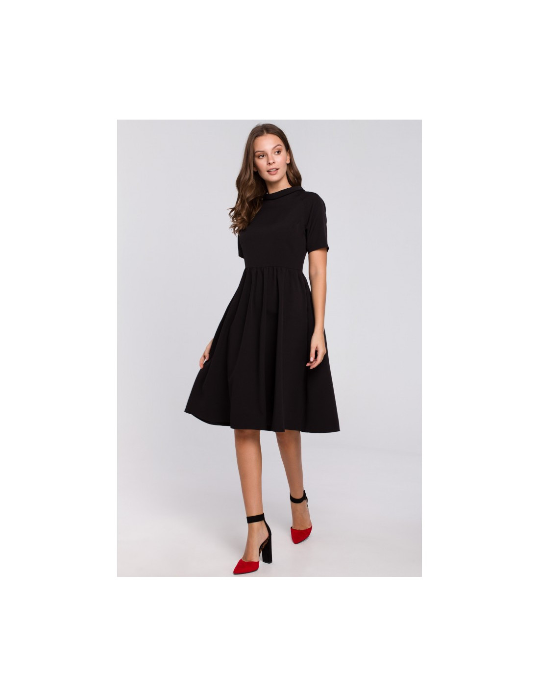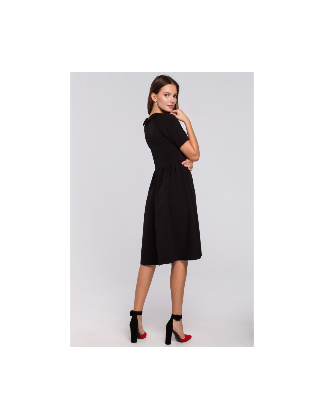 K028 Suknelė su apykakle - juoda