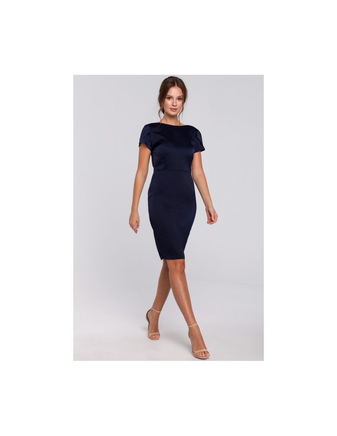 K041 Suknelė su vandens iškirpte nugaroje - tamsiai mėlyna