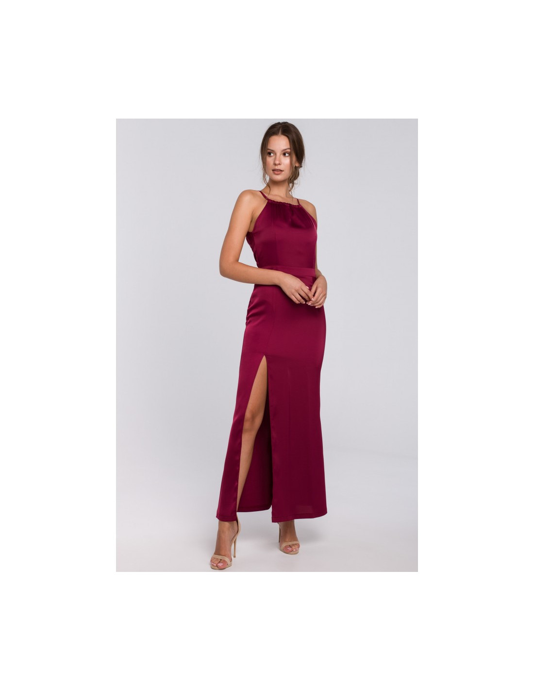 K042 Ilga suknelė su praplatėjimu iki šlaunų - bordo spalvos