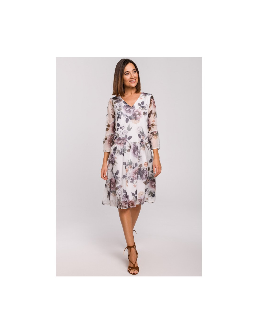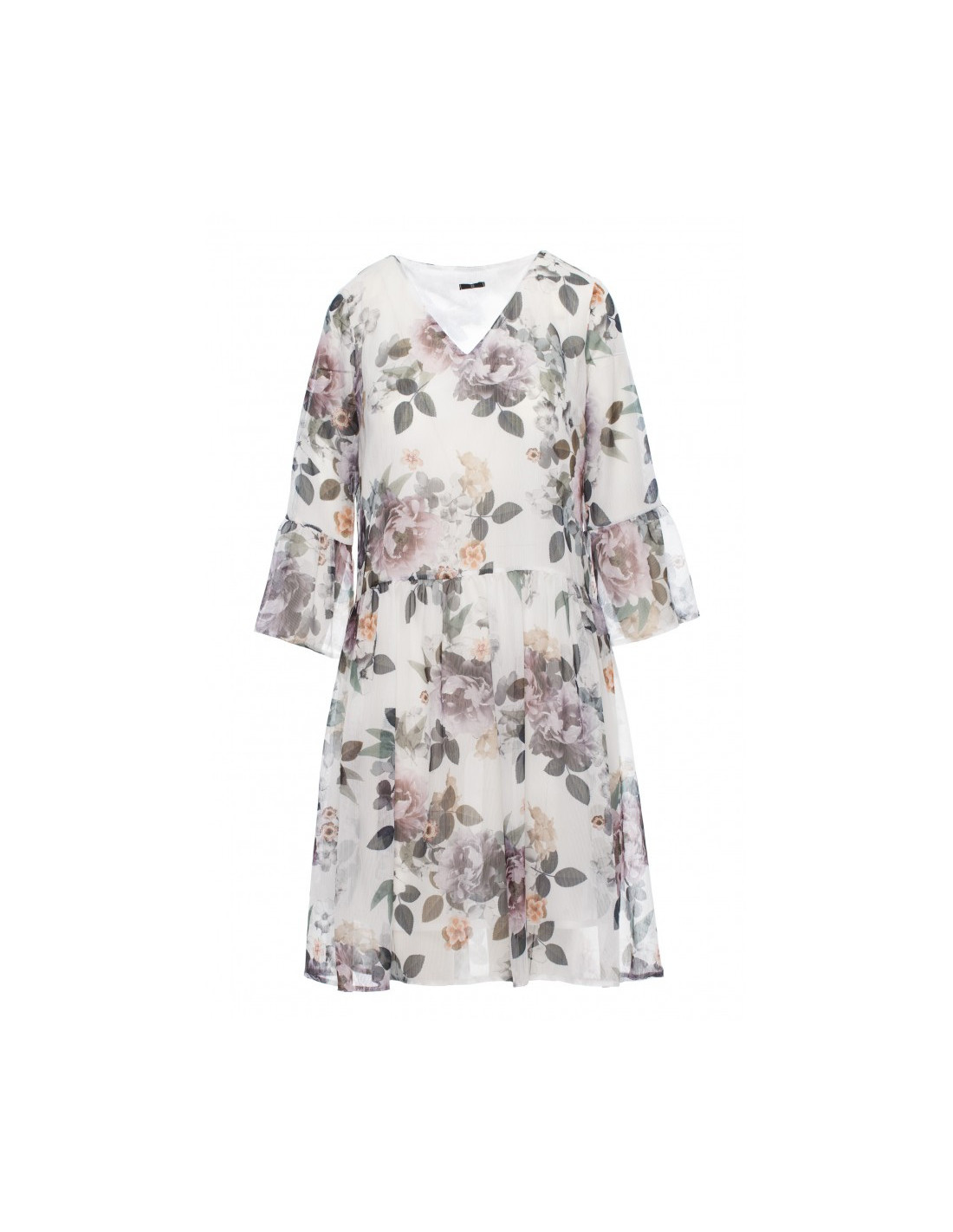 Ši lengva gėlėta šifono suknelė žavi ne tik savo raštu, bet ir kirpimu. Šiek tiek laisvesnė ir su nuleistu liemeniu - ji puikiai priglunda ir dera prie judesių. Puiki suknelė karštoms dienoms.