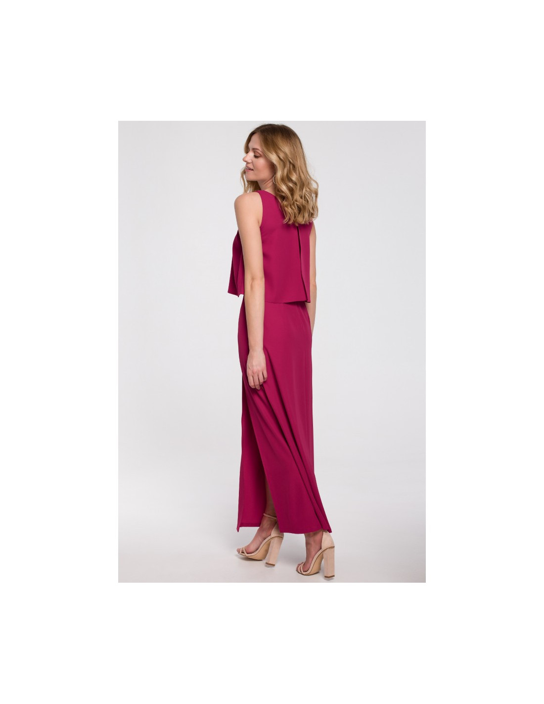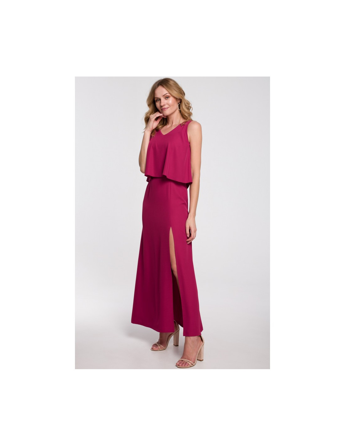 Gražaus kirpimo suknelė iš plazdančio audinio - su dviguba viršutine raukinio formos dalimi ir siluetą ilginančia apatine linija, besitęsiančia iki pat žemės, su ilgu šlaunų aukščio prakirpimu. Labai jausminga, išskirtinai atrodo judant.