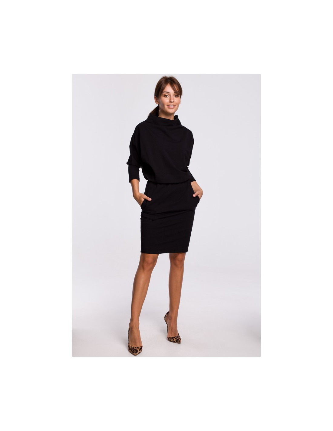 B175 Prigludusi suknelė kimono rankovėmis - juoda