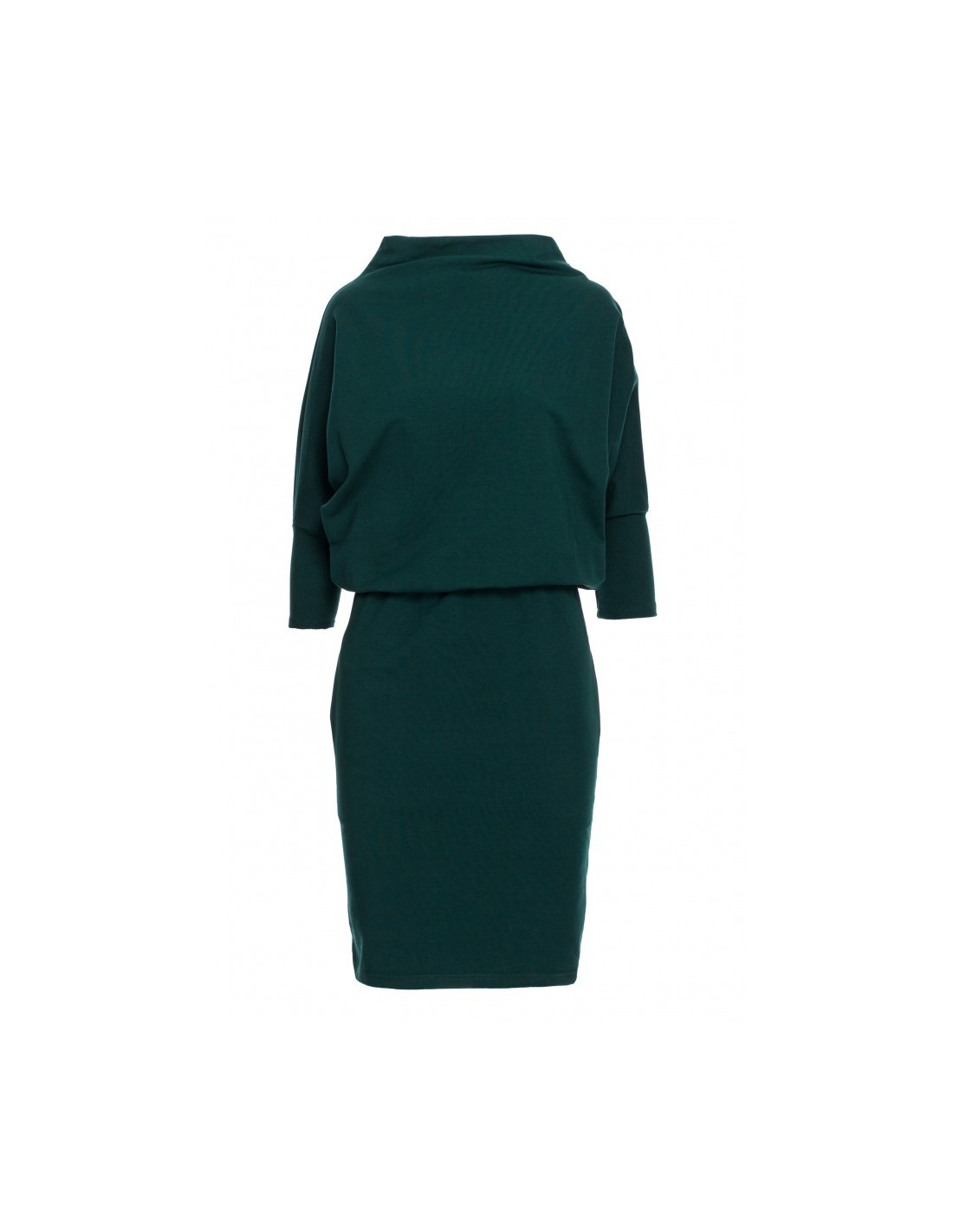 B175 Prigludusi suknelė kimono rankovėmis - tamsiai žalia