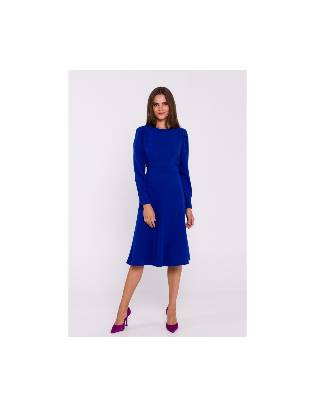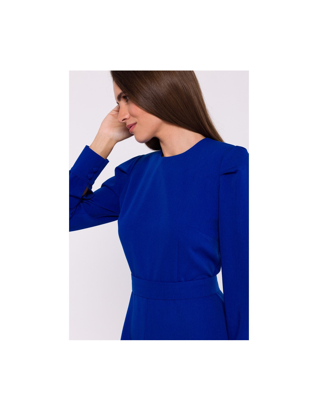 S378 Suknelė ilgomis rankovėmis ir diržu - rugiagėlių spalvos