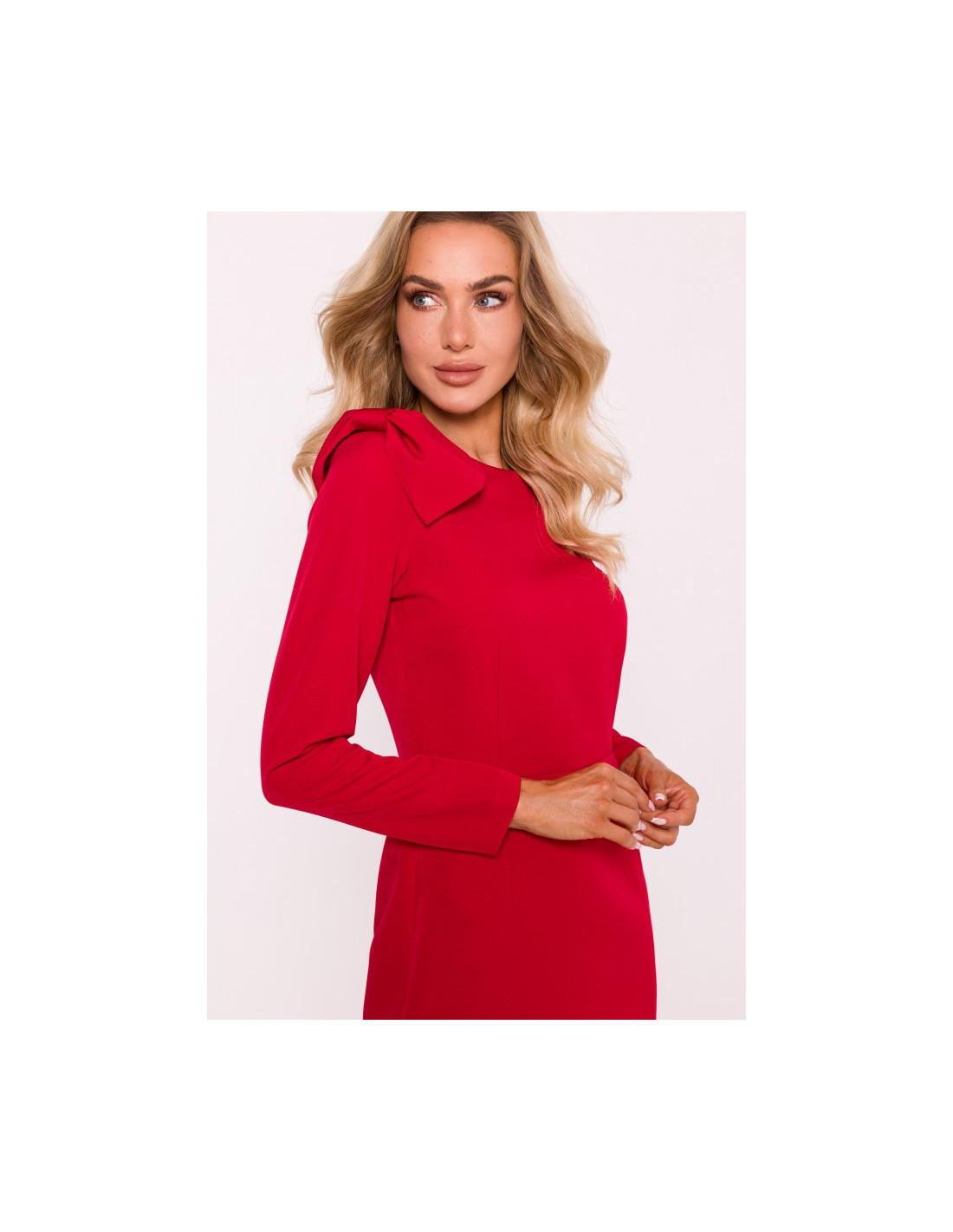ilgomis rankovėmis su dekoratyviniu lankeliu ant vieno peties