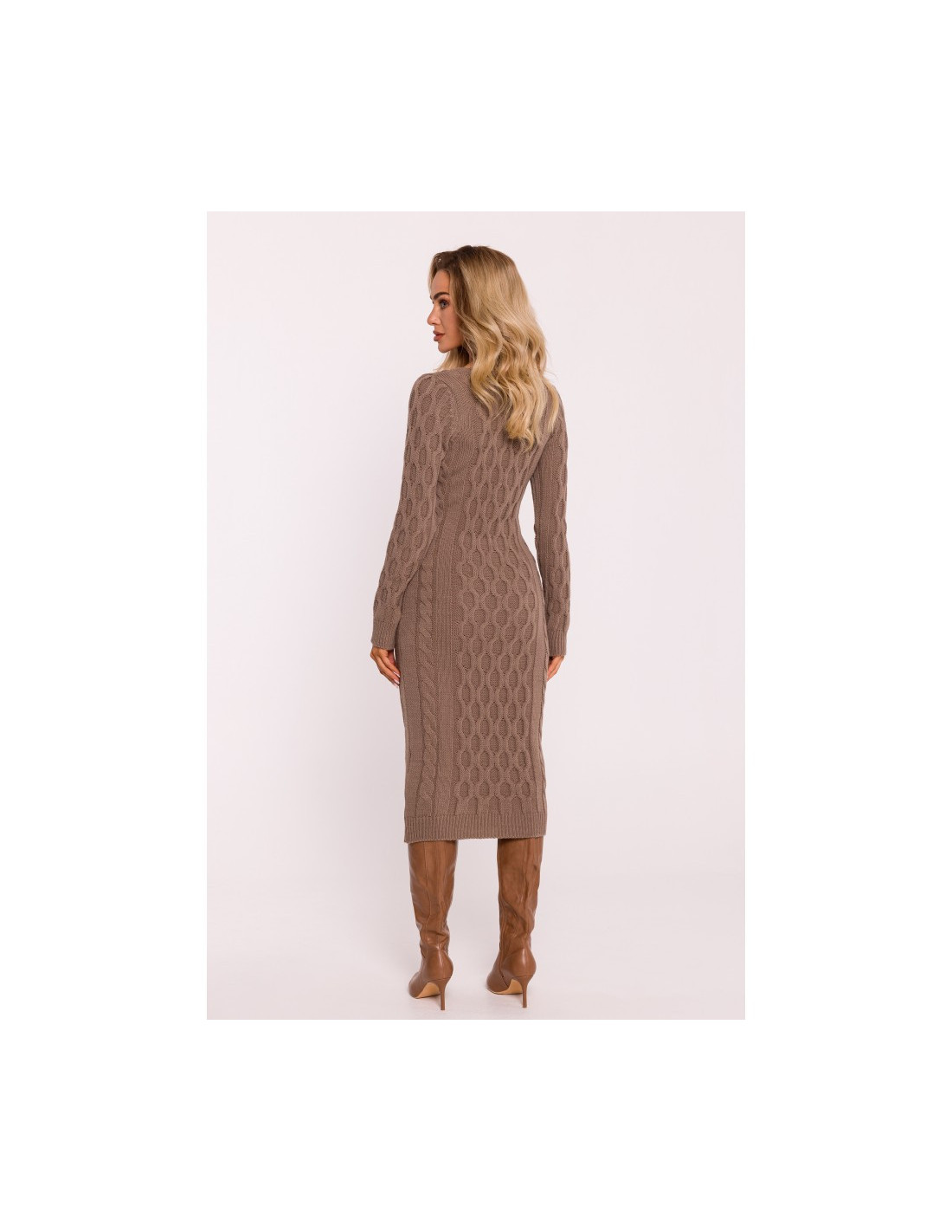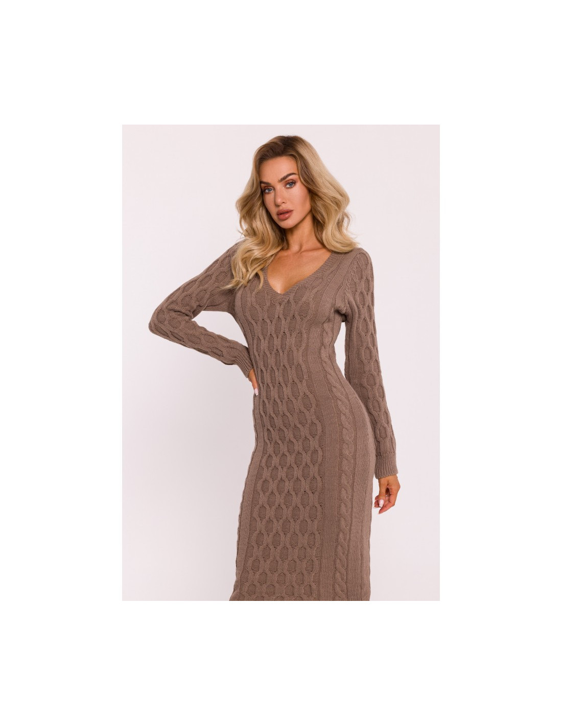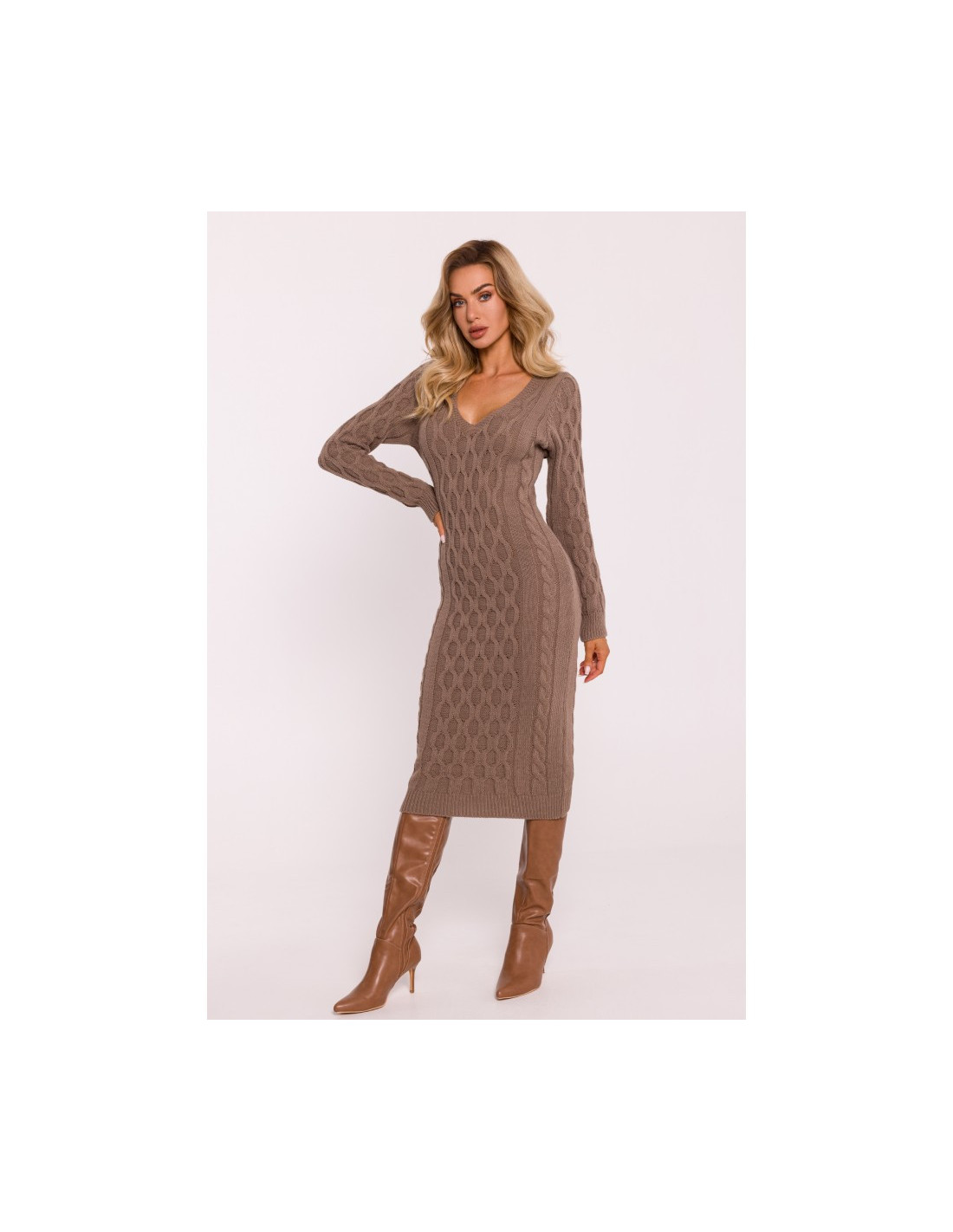 M824 Megztinė suknelė V formos iškirpte - cappuccino