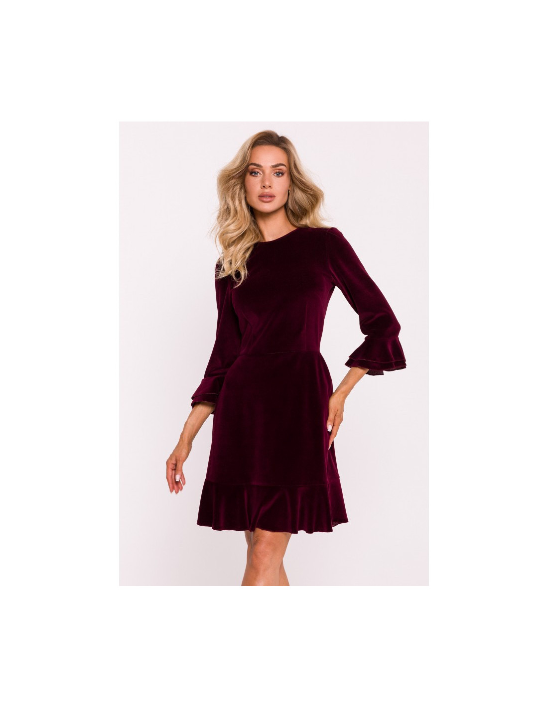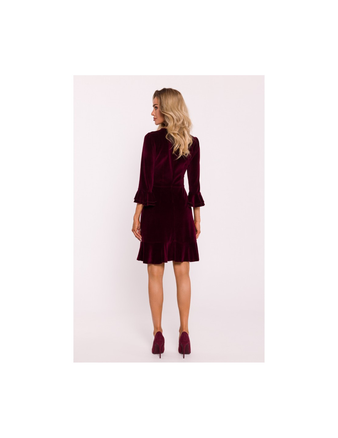 M825 Velūro suknelė su raukiniais - bordo spalvos