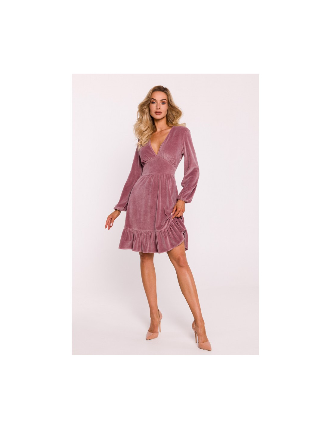 M826 Velūro suknelė su snapeliu - purvinai rožinė