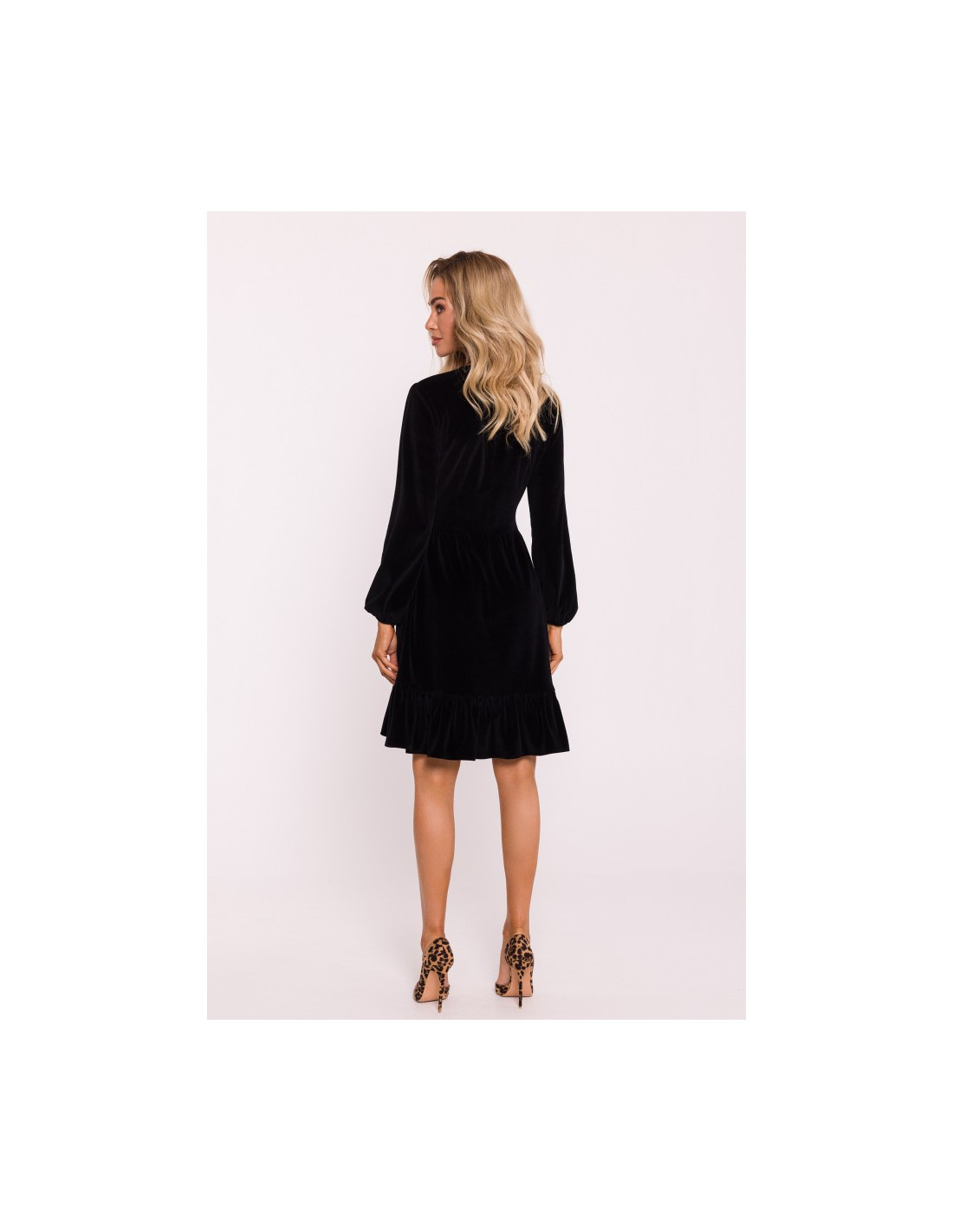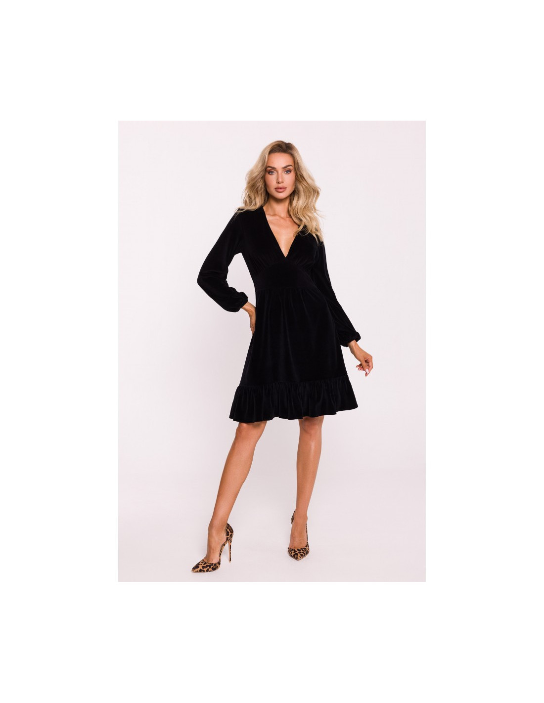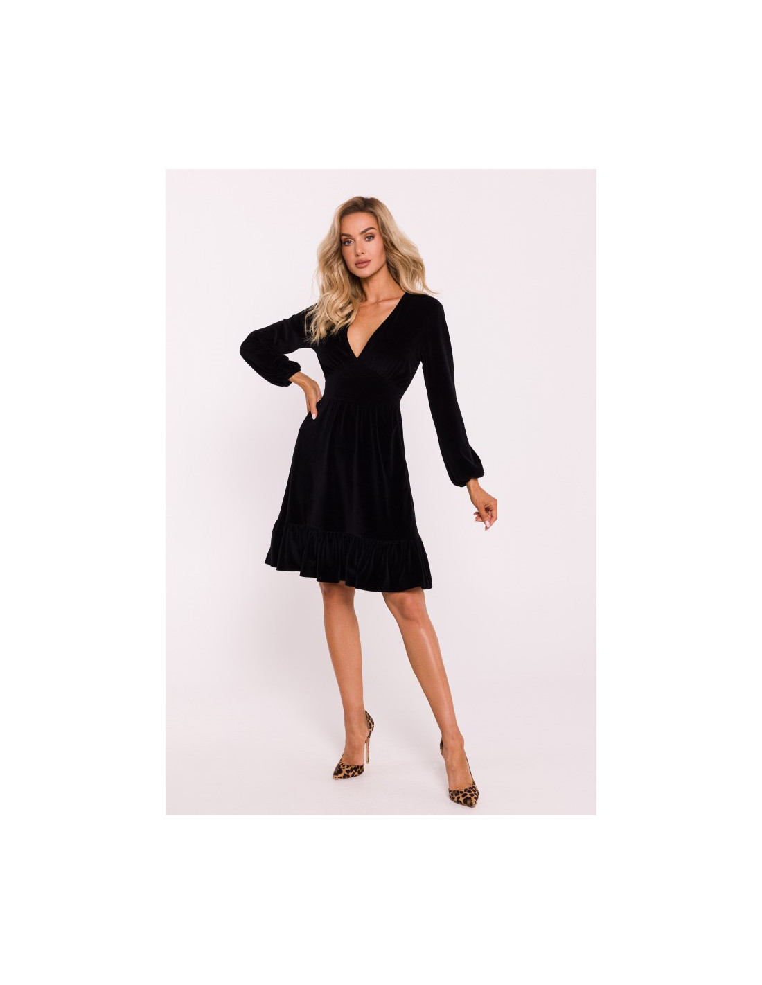 80 % medvilnės 20 % poliesterio INFORMACIJA APIE GAMINĮ: velūro trikotažas suknelė su pabrėžtu liemeniu gili V formos iškirptė ilgos bufetinės rankovės, užbaigtos elastine juosta šiek tiek platėjantis sijonas, užsibaigiantis raukiniais ilgis iki kelių šonuose užsegamas užtrauktukas be pamušalo mūsų modelis yra 171 cm ūgio ir dėvi S dydį sukurta ir siūta Lenkijoje