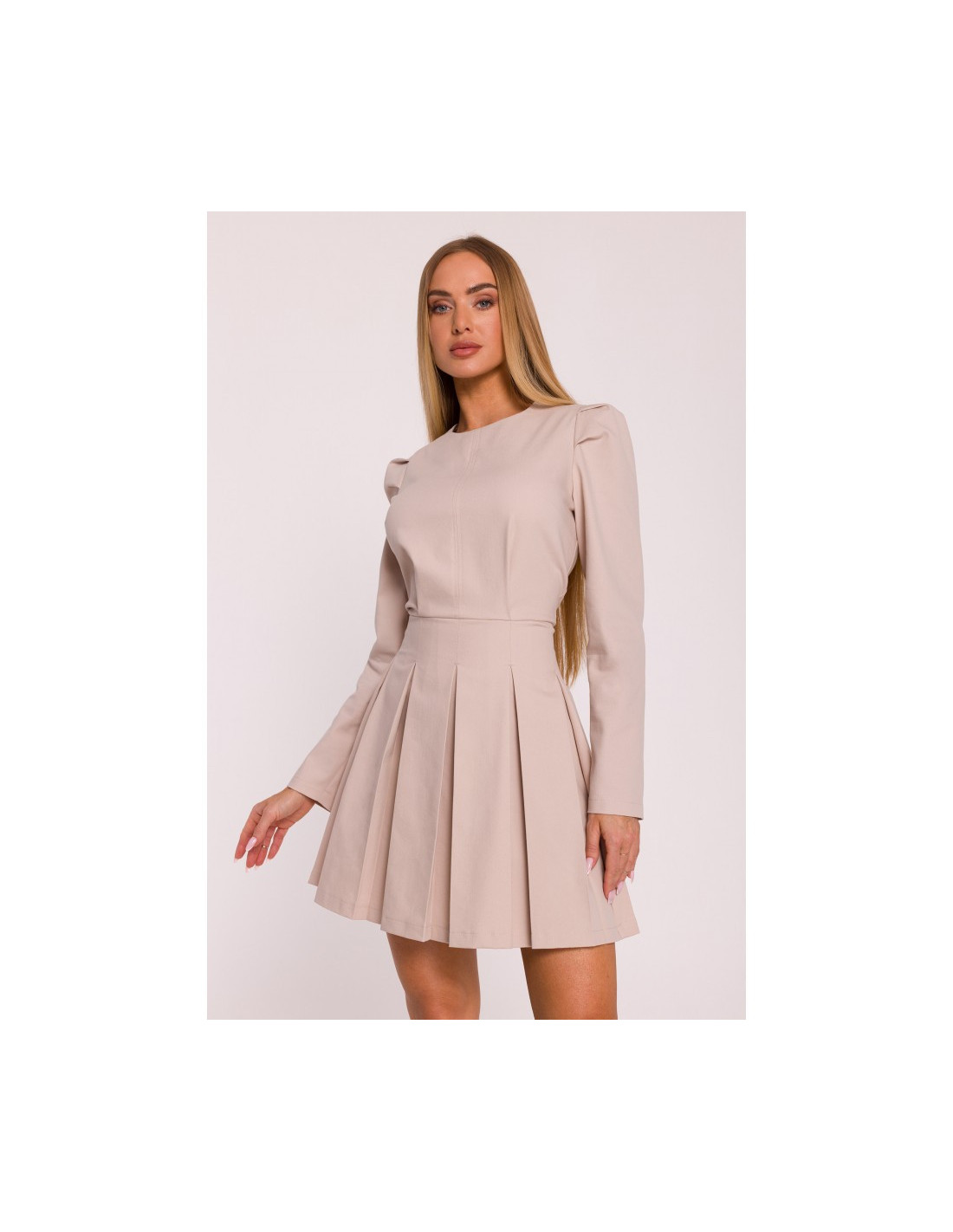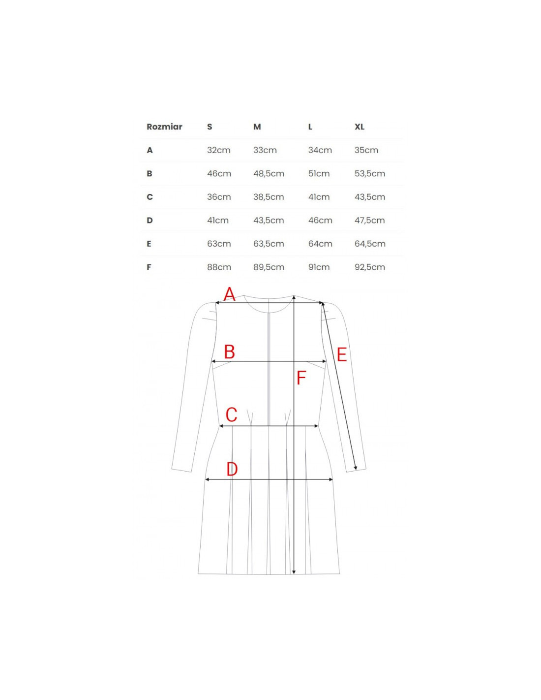 76 % medvilnės 21% poliesteris 3% elastano MATERIALAS Medžiaga: džinsą imituojantis audinys - šiek tiek standus, matinis, šiek tiek elastingas INFORMACIJA APIE GAMINĮ Iškirptė: apvali, klasikinė Rankovės: ilgos, su klostėmis ant pečių Užsegimas: užtrauktukas nugaroje Kišenės: be kišenių Pamušalas: nėra Modelis: M884 Sukurta ir siūta Lenkijoje Nuotraukoje pavaizduotas modelis yra 171 cm ūgio, dėvi S dydžio drabužius MADA IR KIRPIMAS Kirpimas: prigludusi viršutinė dalis, platėjanti apatinė dalis su kontrastingomis klostėmis Forma: pabrėžtas liemuo, išryškinti pečiai Ilgis: mini
