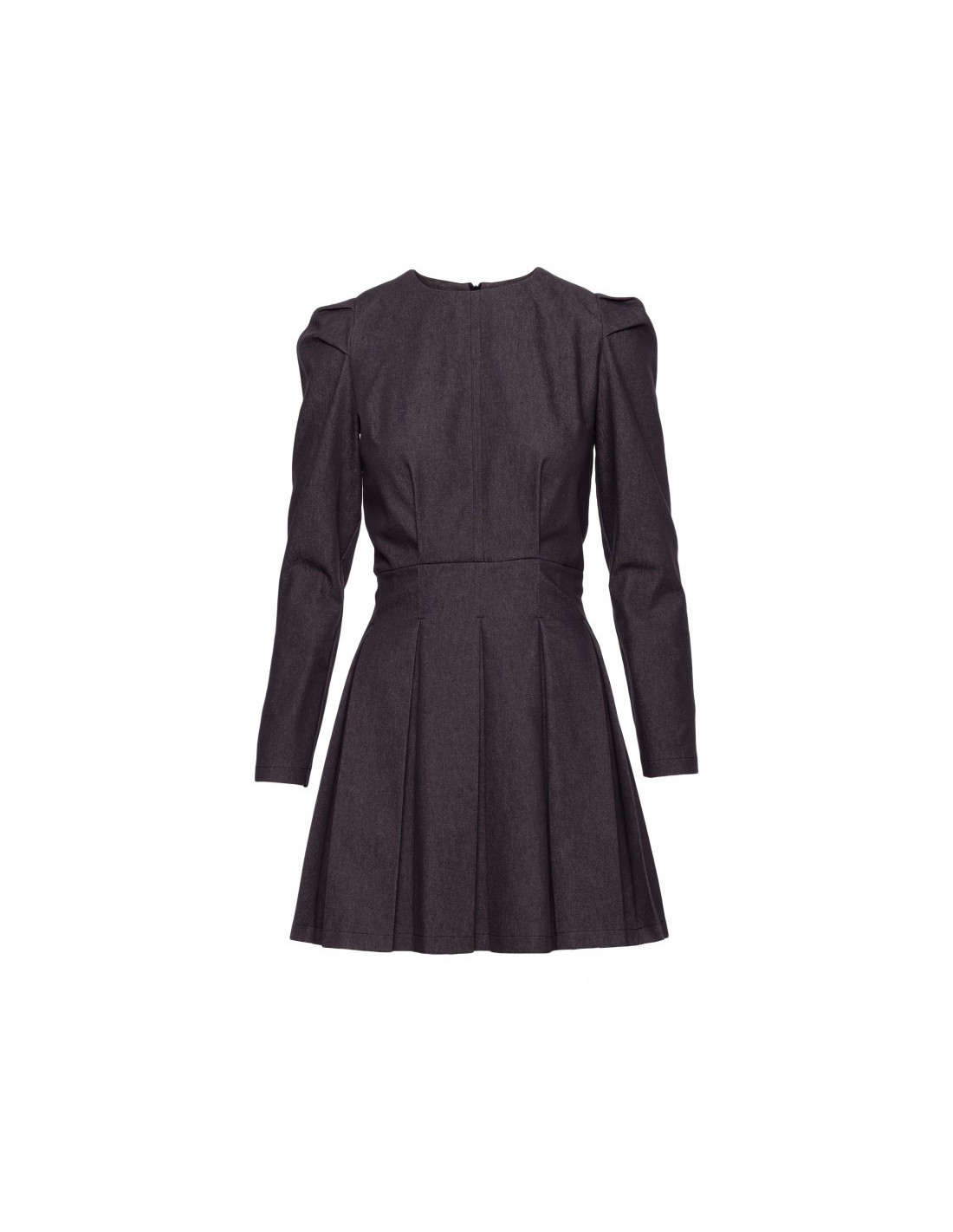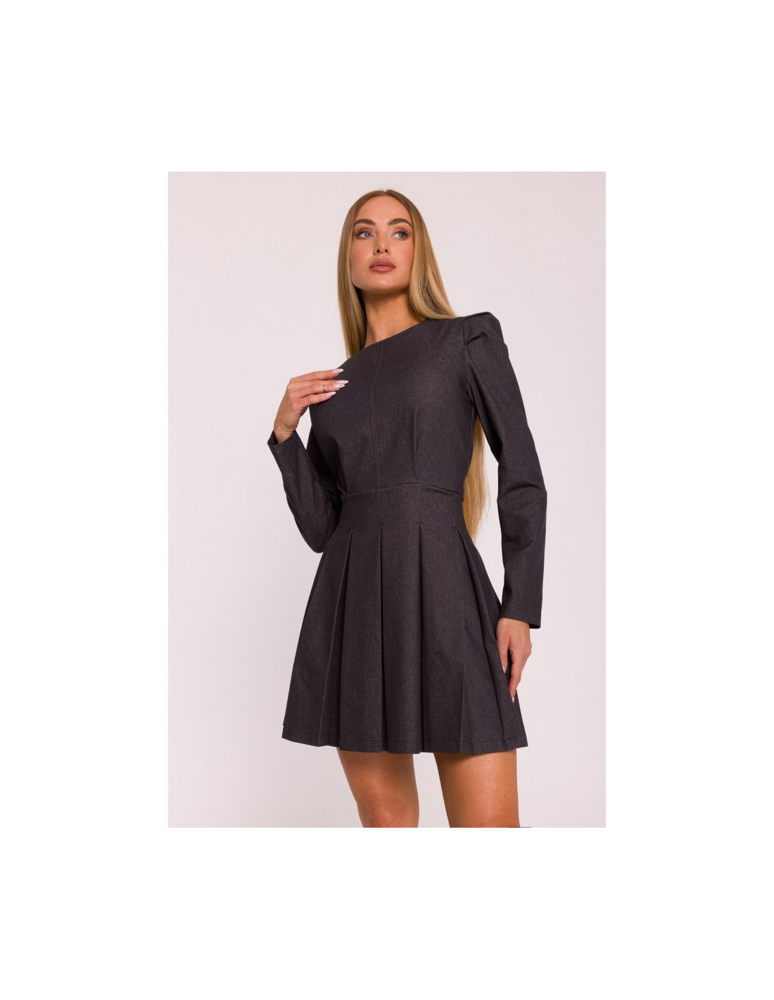 76 % medvilnės 21% poliesteris 3% elastano MATERIALAS Medžiaga: džinsą imituojantis audinys - šiek tiek standus, matinis, šiek tiek elastingas INFORMACIJA APIE GAMINĮ Iškirptė: apvali, klasikinė Rankovės: ilgos, su klostėmis ant pečių Užsegimas: užtrauktukas nugaroje Kišenės: be kišenių Pamušalas: nėra Modelis: M884 Sukurta ir siūta Lenkijoje Nuotraukoje pavaizduotas modelis yra 171 cm ūgio, dėvi S dydžio drabužius MADA IR KIRPIMAS Kirpimas: prigludusi viršutinė dalis, platėjanti apatinė dalis su kontrastingomis klostėmis Forma: pabrėžtas liemuo, išryškinti pečiai Ilgis: mini