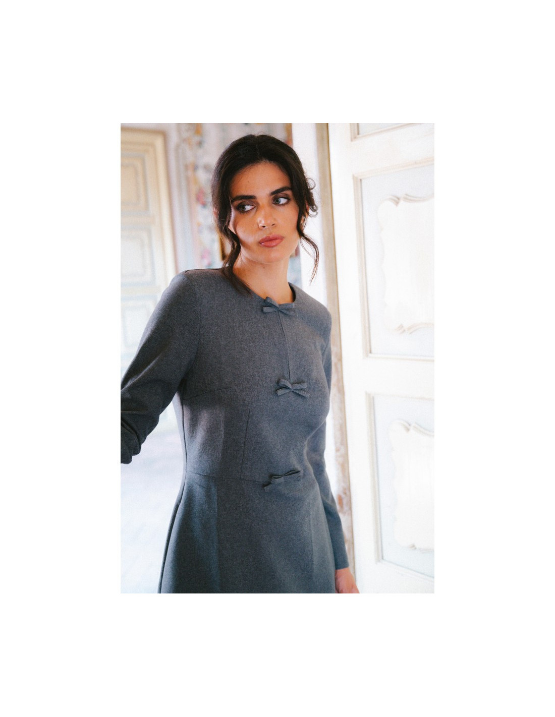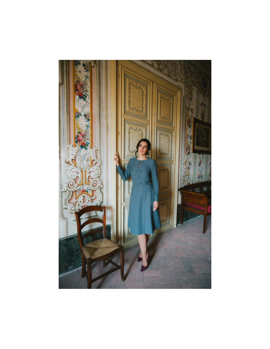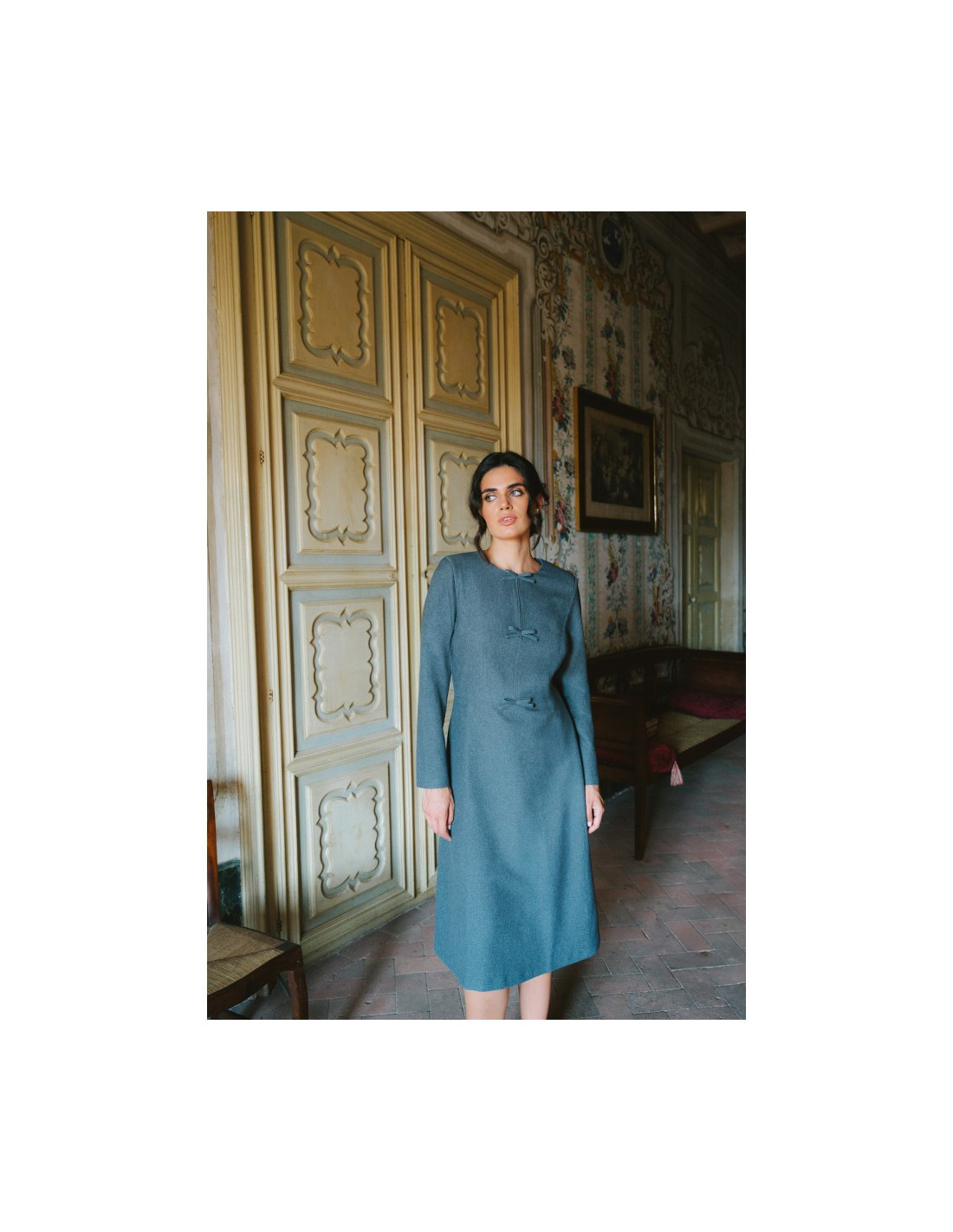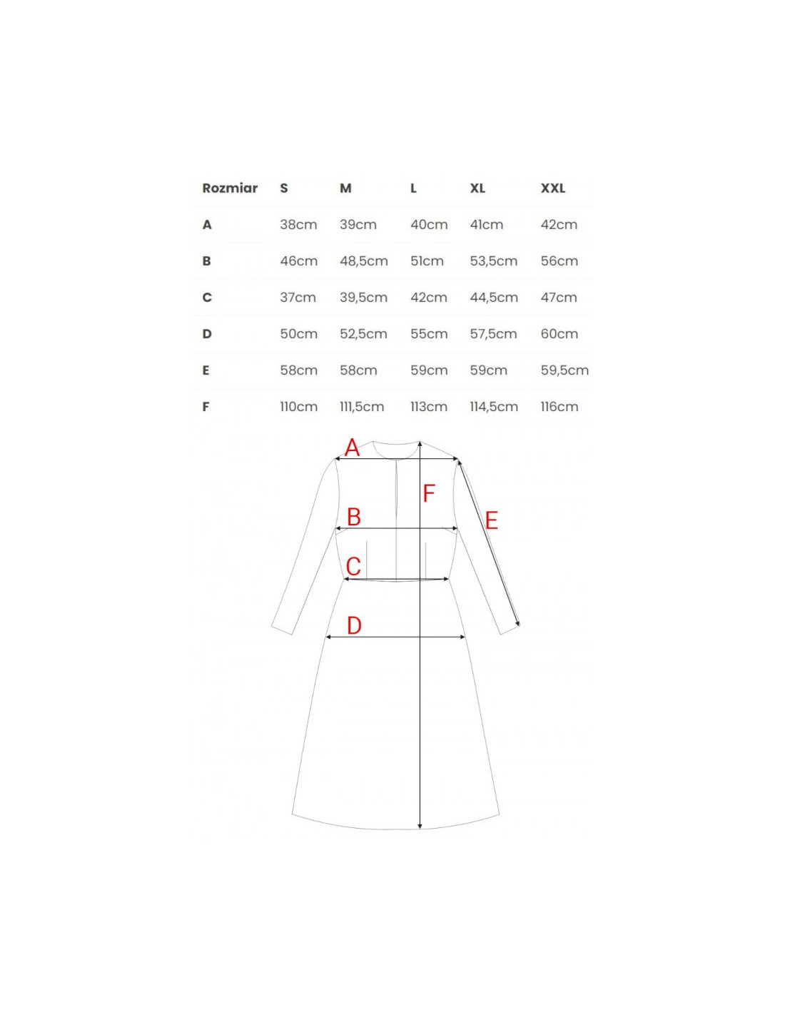 Stylove97 % poliesteris 3% elastano MATERIALAS Medžiaga: lygus melanžo struktūros audinys INFORMACIJA APIE GAMINĮ Iškirptė: pusapvalė iškirptė, apačioje suskaidyta Rankovės: ilgos Kišenės: šoninėse siūlėse Priedai: lankeliai priekyje, viduryje Užsegimas: užtrauktukas nugaroje Pamušalas: be pamušalo Modelis: S413 Sukurta ir siūta Lenkijoje Modelis yra 174 cm ūgio, dėvi S dydžio drabužius MADA IR KIRPIMAS Kirpimas: trapecijos formos kirpimas su dekoratyviniais lankeliais priekyje Forma: laisva A raidės formos, laisva ties klubais Ilgis: virš kelių