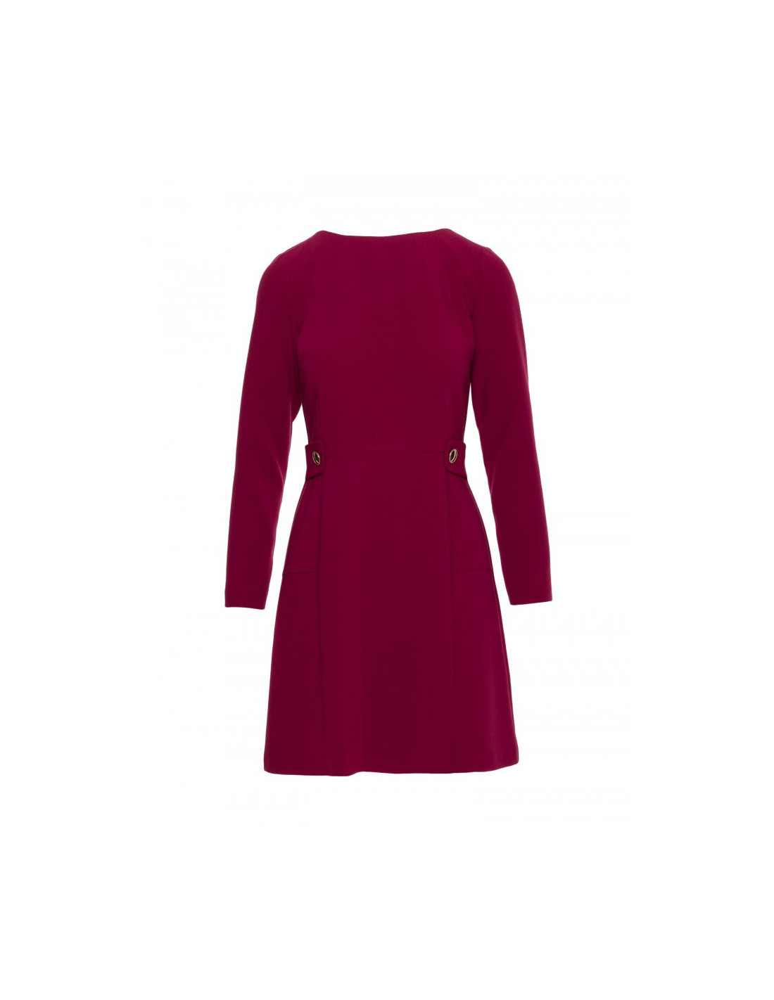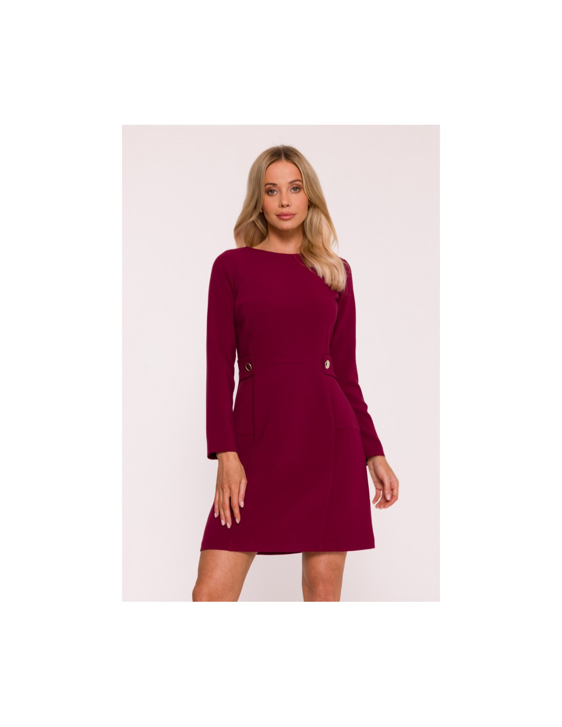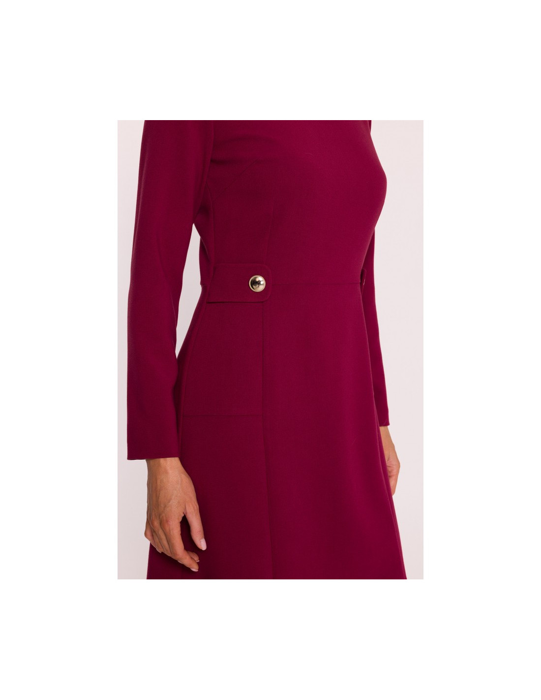 S419 Suknelė su dekoratyvinėmis sagomis ties liemeniu - bordo spalvos