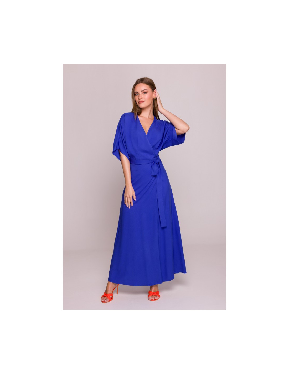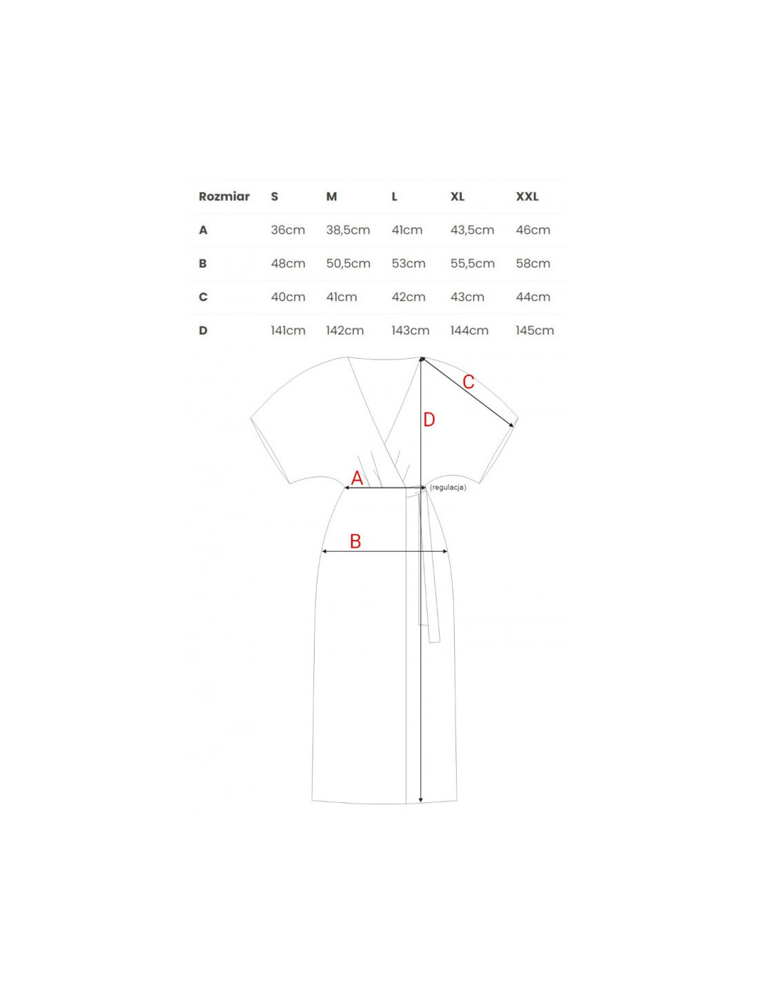 100 % viskozė MATERIALAS Medžiaga: lengvas viskozės audinys, satino apdaila INFORMACIJA APIE GAMINĮ Iškirptė: V formos Rankovės: laisvos, iki alkūnės Užsegimas: susirišimas ties juosmeniu Kišenės: nėra Pamušalas: nėra Modelis: S406 Sukurta ir siūta Lenkijoje Nuotraukoje pavaizduotas modelis yra 170 cm ūgio, dėvi S dydį MADA IR KIRPIMAS Kirpimas: laisvalaikio Forma: ties juosmeniu susegta, apačioje platėjanti Ilgis: maksi ir (arba) ilgas Skerspjūvis: priekyje