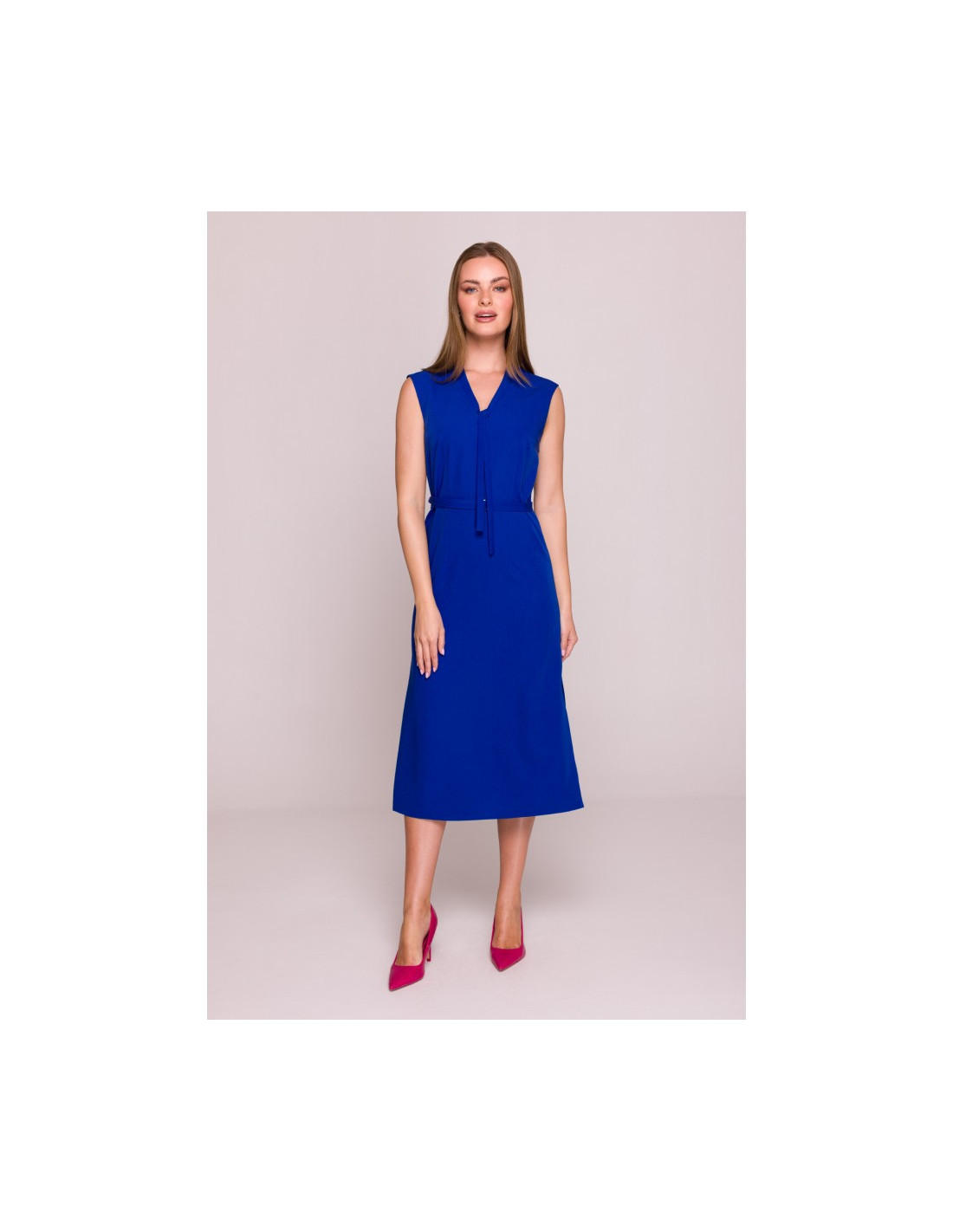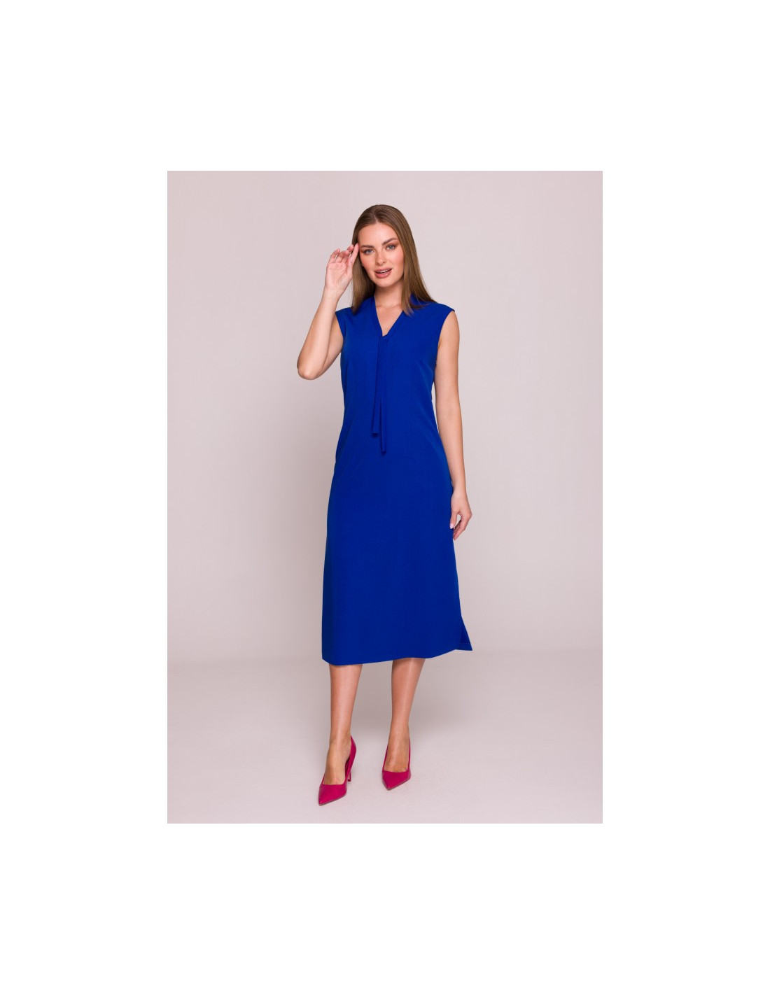 S410 Suknelė su kaklo iškirpte - rugiagėlių mėlyna