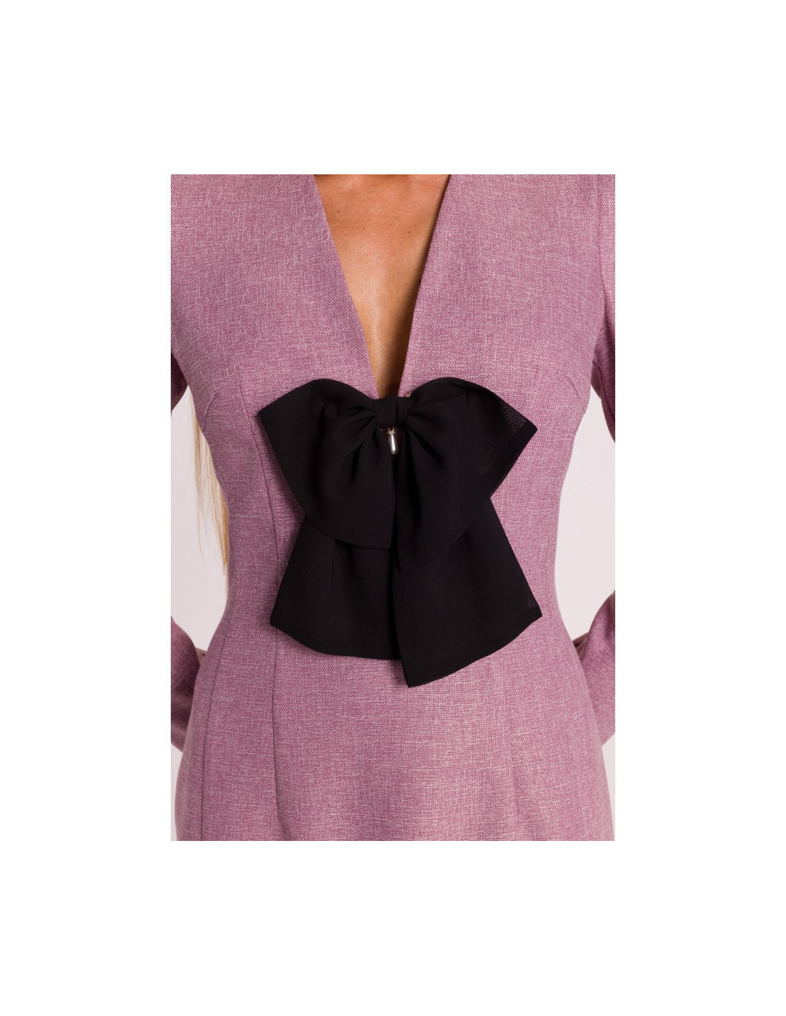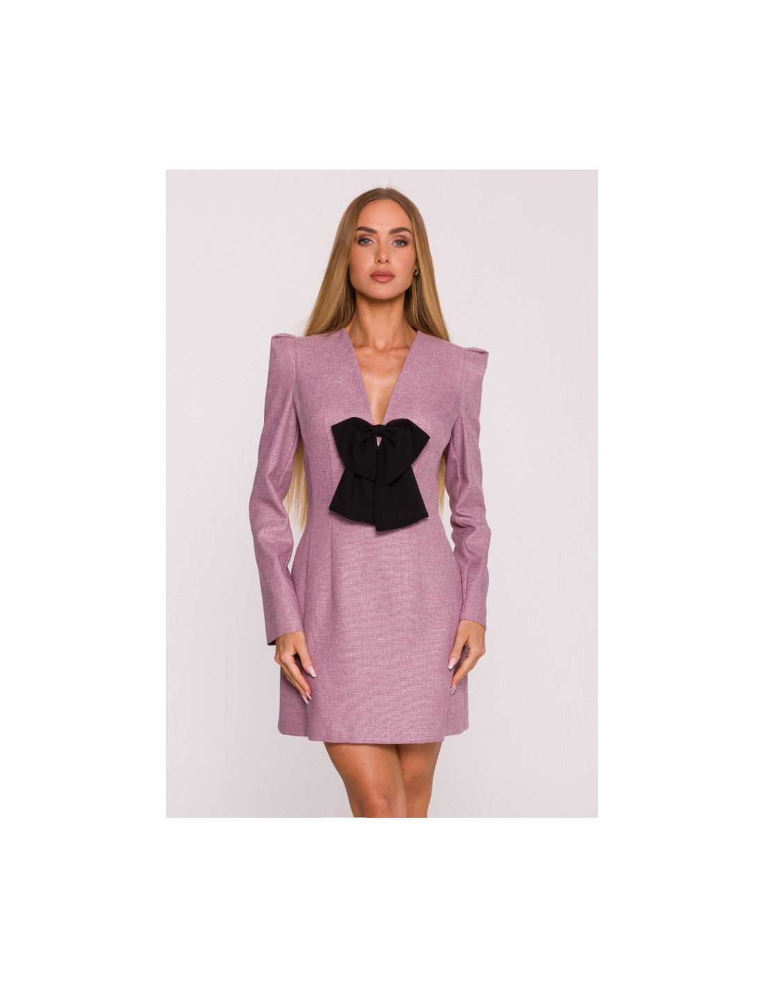 PAGRINDO AUDINYS: 70 % poliesteris 27% viskozės 3% elastano SUKURTAS: 95% poliesteris 5% elastanas MATERIALAS: Medžiaga: tvido audinys INFORMACIJA APIE GAMINĮ: Iškirptė: gili, V formos Rankovės: ilgos Užsegimas: paslėptas užtrauktukas nugaroje Kišenės: nėra Pamušalas: taip Modelis: melanžas Priedai: dekoratyvinis šifono lankelis su papuošalu pakabuku Modelis: M869 Sukurta ir siūta Lenkijoje Nuotraukoje pavaizduotas modelis yra 171 cm ūgio, dėvi S dydžio drabužius MADA IR KIRPIMAS: Kirpimas: šiek tiek prigludęs Forma: pabrėžiamas liemuo, šiek tiek praplatinti pečiai su bufetais Ilgis: mini